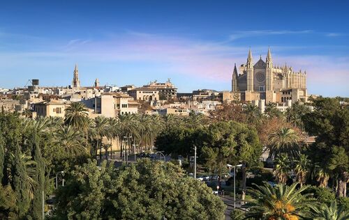 Historisches Gebäude mit Blick auf die Kathedrale in Santa Catalina