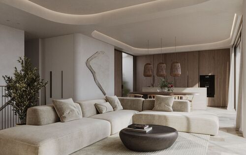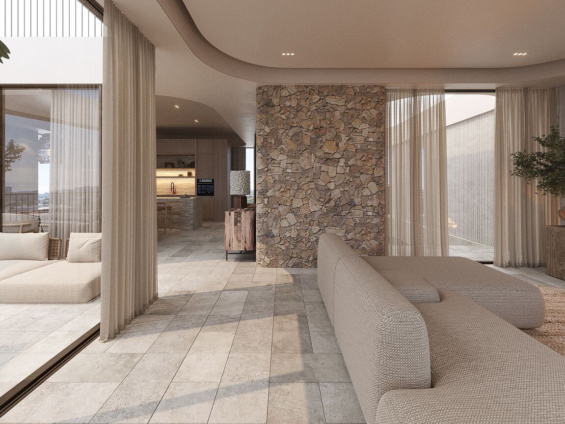 In einer ruhigen Wohngegend in Palmas Küstenvorort San Agustín wird die exklusive Neubausiedlung Monaco Suites entstehen. Die insgesamt fünf nach Süden ausgerichteten Residenzen sind aufgeteilt in zwei geräumige Gartensuiten mit eigenem Garten und drei Duplex-Penthäuser mit privaten Dachterrassen und atemberaubendem Meerblick. Jede Wohnung bietet drei Schlafzimmer und drei Bäder - zwei davon en suite - sowie ein Gäste-WC. Der offene Wohn- und Essbereich verfügt über eine individuell gestaltete Küche mit hochwertigen Einbaugeräten von Gaggenau und Miele. Große, bodentiefe Schiebetüren lassen viel natürliches Licht in die Räume und bieten direkten Zugang zu den privaten Außenbereichen: Neben einer Terrasse auf der Hauptwohnebene verfügen die Penthäuser über eine große private Dachterrasse mit atemberaubendem Blick auf das Meer und die üppige Berglandschaft. Ein besonderes Highlight ist, dass jedes Penthouse über einen privaten Aufzug verfügt, der die Garage direkt mit der Wohnung verbindet und beide Etagen miteinander verbindet. Zu den weiteren Ausstattungsmerkmalen gehören ein KNX Smart Home System, ein Gaskamin, Einbauschränke und begehbare Kleiderschränke, hochwertige Marmorböden (Atlantic Grey) und zwei Tiefgaragenstellplätze pro Einheit. Für ganzjährigen Komfort sorgen eine Klimaanlage und eine Fußbodenheizung, die von einer Wärmepumpe betrieben wird. Neben den privaten Außenbereichen steht allen Bewohnern ein großzügig angelegter Gemeinschaftspool mit Sonnenterrasse sowie ein üppig bepflanzter Gemeinschaftsgarten zur Verfügung - eine grüne Oase in unmittelbarer Nähe zur Stadt und zum Strand. Für diejenigen, die nach einem erholsamen Tag am Pool aktiv bleiben möchten, steht vor Ort ein voll ausgestatteter, klimatisierter Fitnessraum zur Verfügung. Der Yachthafen Port Cala Nova mit seinen Cafés und kleinen Geschäften sowie der schöne Sandstrand von Cala Major sind zu Fuß erreichbar. Das Stadtzentrum von Palma ist nur etwa 10 Autominuten entfernt, und auch mehrere internationale Schulen, Golfplätze und zahlreiche Sportanlagen befinden sich in der Nähe.