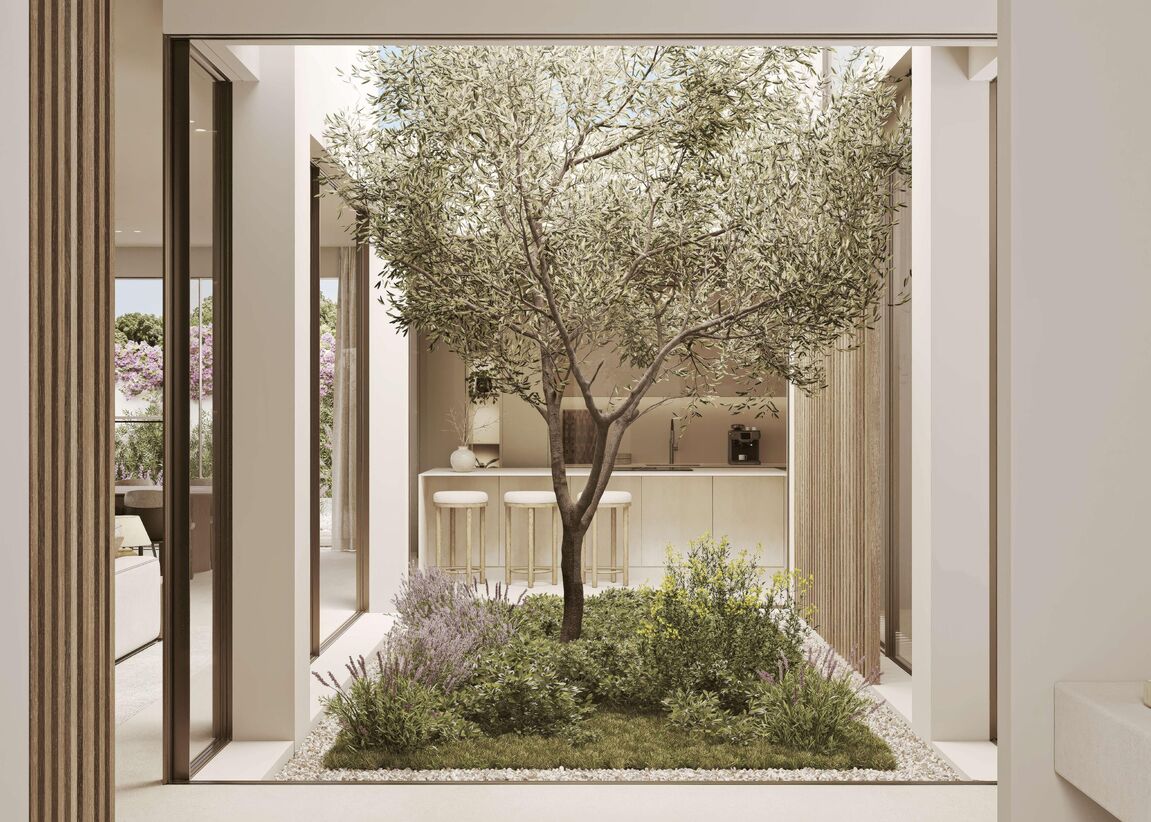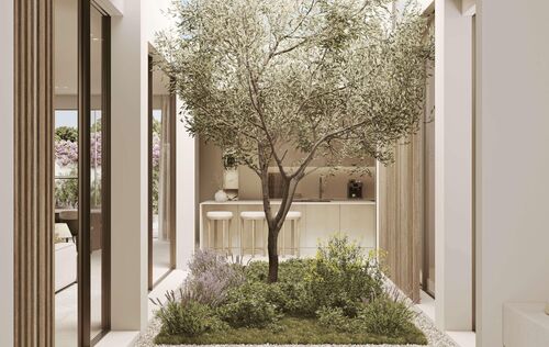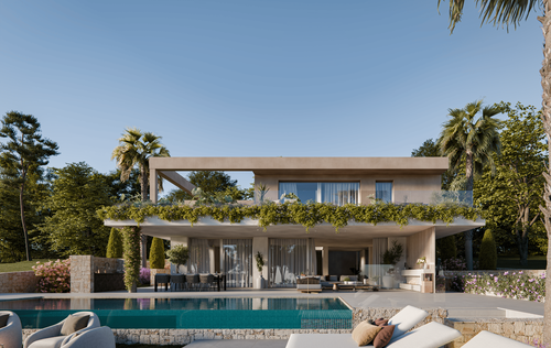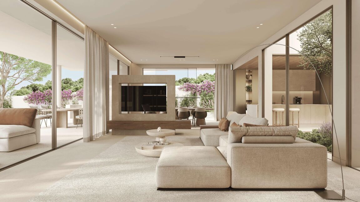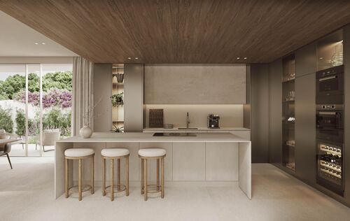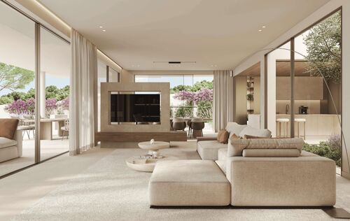 In one of the most sought-after residential areas in the southwest of Mallorca, just minutes from the charming sports harbor of Santa Ponsa, this exclusive new-build villa is presented as an architectural masterpiece of modern living. On a spacious plot of over 1,100 m², more than 600 m² of built-up area combine to create a luxurious home with ample space for individuality, comfort, and stylish living — all year round. The villa impresses with careful planning and interior design that is both aesthetically pleasing and functional. This is the work of a renowned developer known for attention to detail, top-quality construction, and a harmonious, calming design concept. The interplay of clean lines, warm materials, and a well-thought-out spatial concept makes this property a place of well-being. Upon entering, the unique atmosphere of the house is immediately apparent: spacious, light-flooded rooms, noble surfaces, and high-quality natural materials such as oak floors and breathable wall finishes in the Mortex style create a harmonious living experience — perfectly adapted to the Mallorcan climate. The central patio is not only an exceptional design element but also ensures pleasant daylight throughout the living area. On the ground floor, in addition to the open-plan living-dining area with a designer kitchen by Poliform (or similar), there is also a fully equipped bedroom with an en-suite bathroom — ideal for guests or residents with limited mobility. An elevator connects all floors, making the house accessible. The upper floor offers a spacious master suite with a fireplace, dressing area, and luxurious bathroom — a private retreat with a special atmosphere. Two additional bedroom suites, each with its own bathroom, provide further comfort for family or guests. The outdoor area is as thoughtfully designed as the interior: lush Mediterranean planting gives the garden privacy and a pleasant, green ambiance. Generous terraces, an elegant outdoor kitchen with a Dekton worktop, and the stylish pool area invite you to relax, celebrate, or simply enjoy the sun. In the basement, there is a large garage with space for three vehicles as well as various storage and technical rooms, optimally rounding off the living concept. The villa's technical equipment leaves nothing to be desired: underfloor heating, air conditioning, indirect LED lighting, high-quality built-in wardrobes, and the finest fittings and materials set the highest standards in terms of comfort and functionality. The location in Santa Ponsa underscores the year-round residential value of this property. Within a few minutes by car, you can reach everything that enriches daily life and the Mediterranean lifestyle: supermarkets, cafés, excellent restaurants, several golf courses, the exclusive country club with professional tennis facilities, and international schools. Santa Ponsa is considered one of the most popular residential areas for families and year-round residents — a perfect balance of tranquility, nature, and urban proximity. This villa is more than just a house — it is a living space for people with a demand for design, quality, and quality of life. A place where every detail has been carefully selected and which, through its clear architecture and gentle design, creates a special retreat — modern, timeless, and soothing. Feel free to contact us for more information or to schedule a personal viewing appointment.