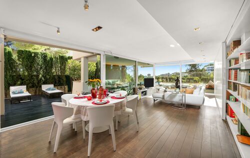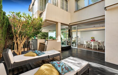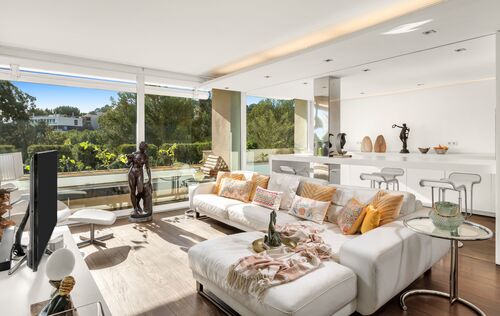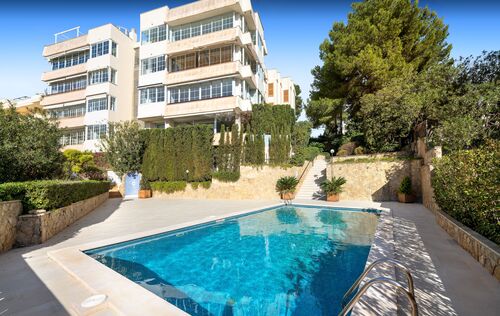 This spacious and bright apartament is located in a community with swimming pool and was completely refurbished in 2014. It is located in the area of Cas Catalá, surrounded by a green and natural environment and just a few minutes walking distance to the beach of Cas Catalá and all the services that the area offers. It consists of two bedrooms and two bathrooms. The master bedroom has two large dressing rooms, an en suite bathroom with turkish bath and access to the terrace. It is important to mention that the second dressing room can easily be converted into a third bedroom. The property has been refurbished with high quality materials. From the living room with open plan kitchen and dining area there is access to a spacious terrace with beautiful views to the nature. Furthermore, it offers a separate laundry room, water decalcification system, air-conditioning, an underground parking space and a backside.