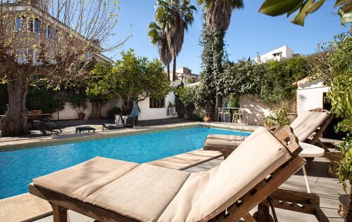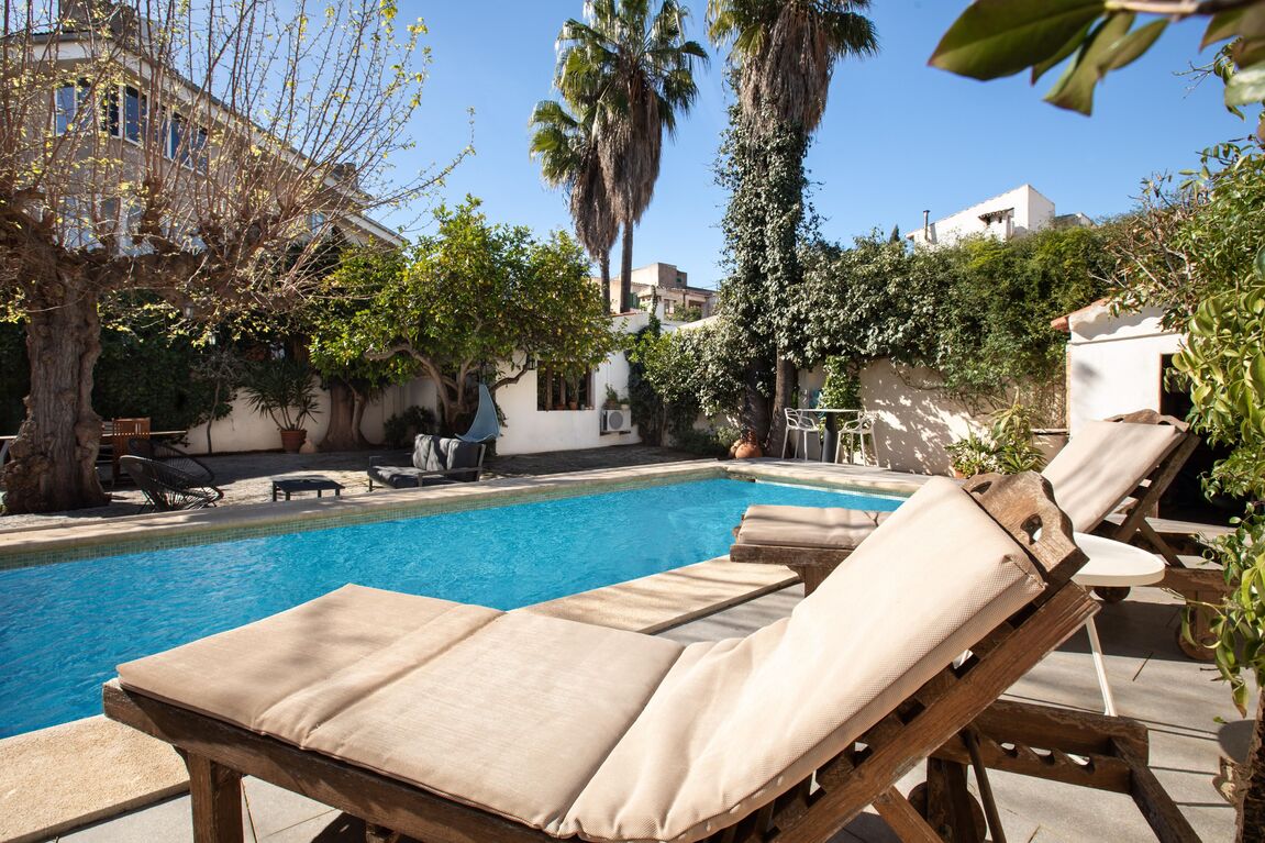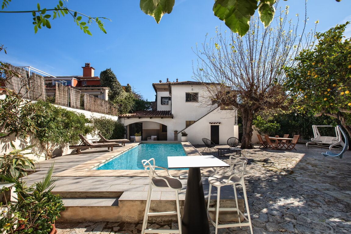 Stately 1940s villa with oasis garden and panoramic tower in Son Armadams