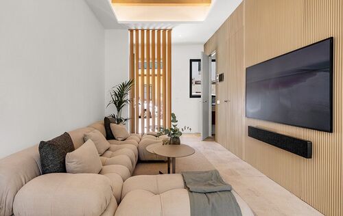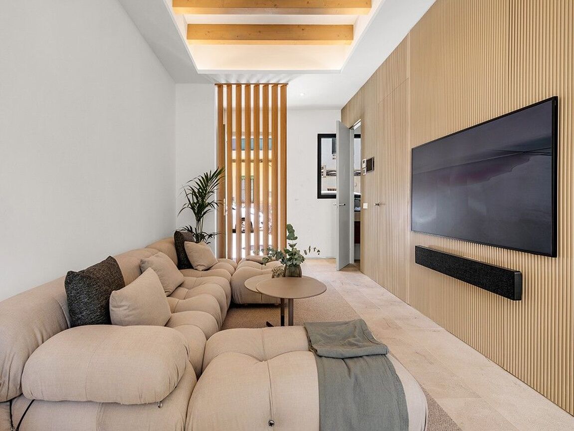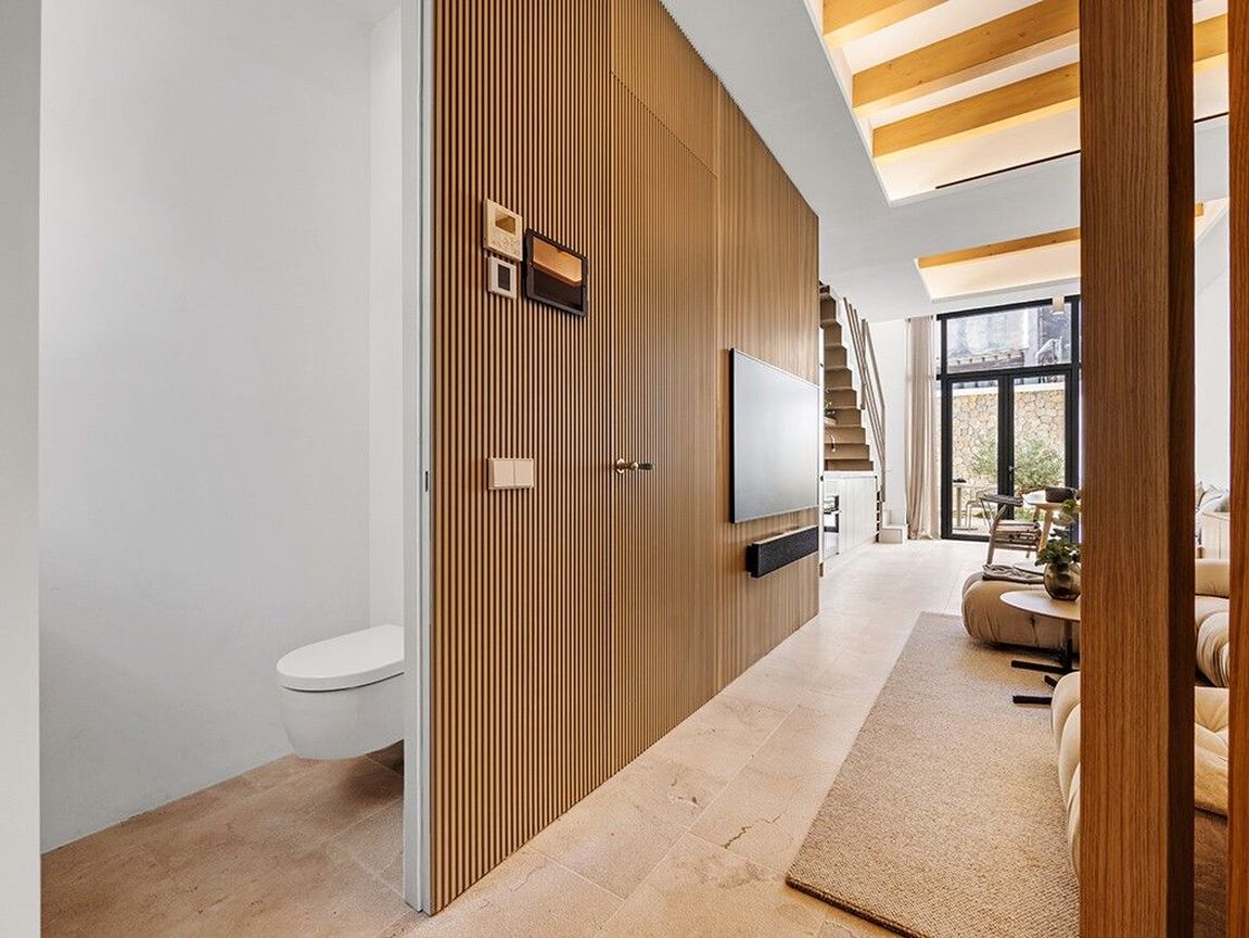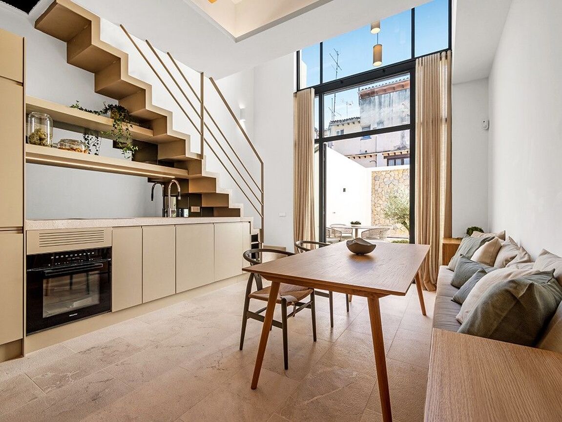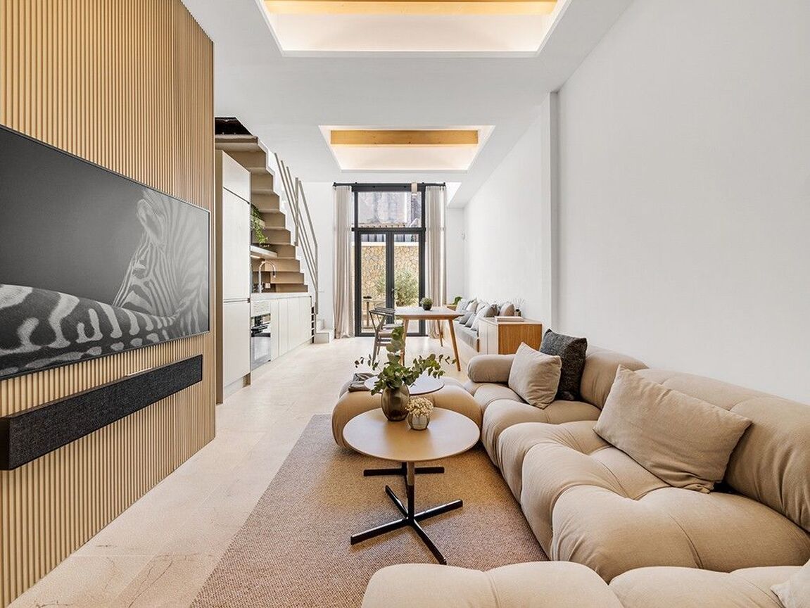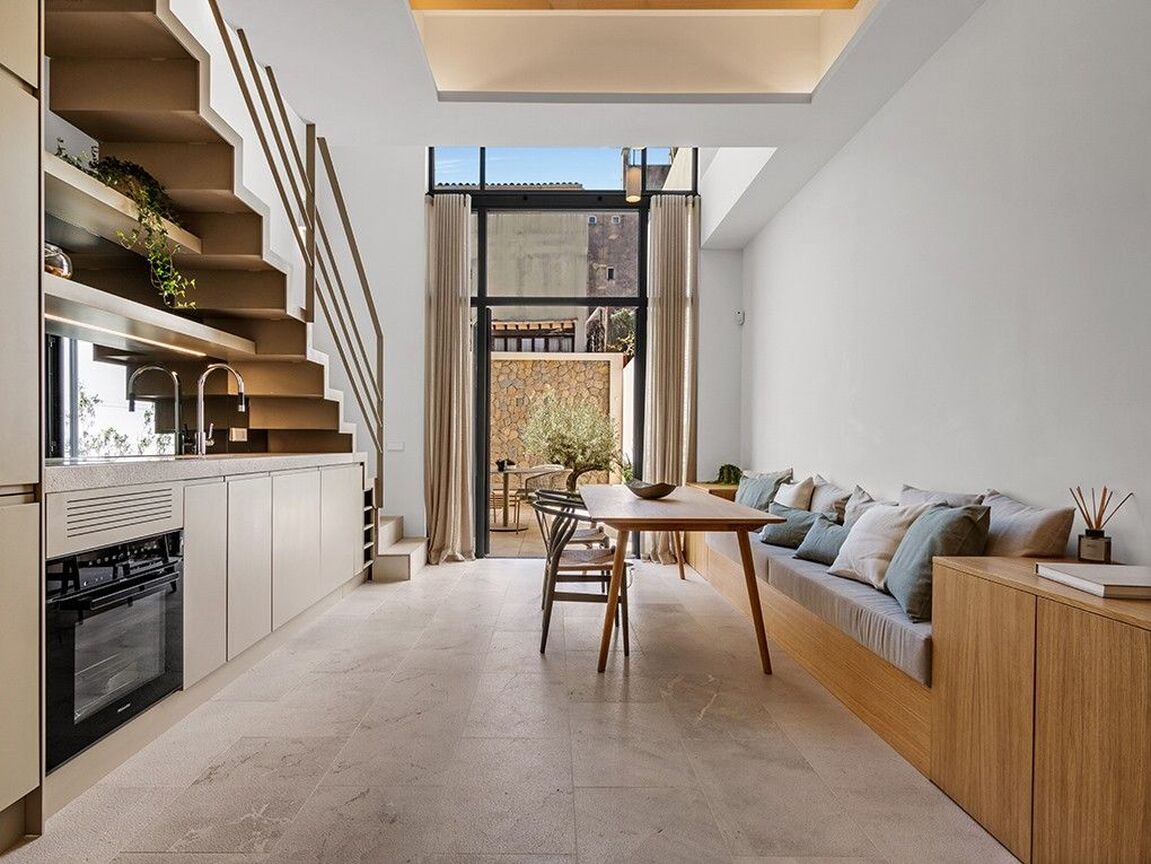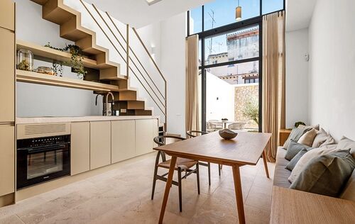Immerse yourself in luxury with this newly built, three-storey townhouse in Palma's vibrant St. Catalina neighborhood. Just a short walk from the famous market, delightful cafés, and top-tier restaurants, this exquisite property offers a blend of comfort and sophistication. It features three generously sized bedrooms and two sleek, modern bathrooms, including a master en suite. The stylish open-plan design showcases premium fixtures and fittings throughout. Outside, enjoy a private courtyard with a refreshing plunge pool, while the expansive roof terrace, equipped with a built-in barbecue, is perfect for entertaining guests. The townhouse includes an elevator, central air conditioning, and underfloor heating for ultimate comfort in any season. Beautifully furnished with contemporary, high-quality pieces, this home exudes elegance. A convenient garage space nearby provides easy parking. This exceptional townhouse presents a rare opportunity to live in luxury in one of Palma's most desirable areas. Embrace the chance to call this magnificent property your new home and indulge in the finest that St. Catalina has to offer.