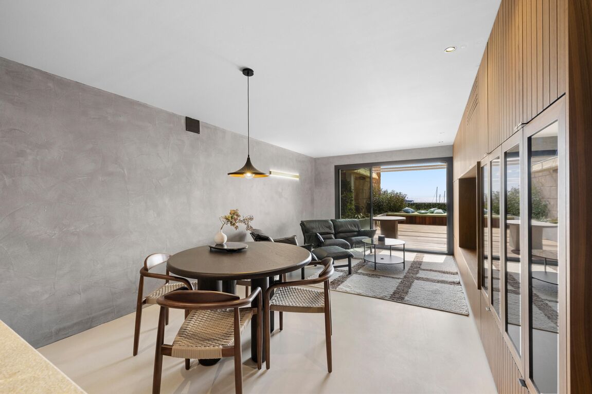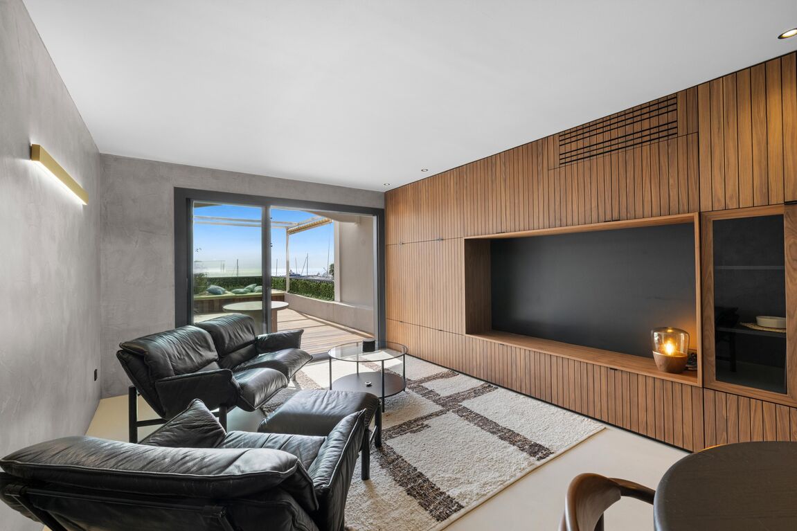 This beautifully refurbished apartment (2025) combines modern elegance with Mediterranean charm and offers breathtaking views over the harbour and the sea. Ideally situated with direct access to the renowned Portals marina, the property places you within steps of the area’s best restaurants, boutiques, and the beach. The apartment offers a bright and inviting living space with air conditioning (hot and cold) throughout. The fully equipped kitchen opens onto a spacious living and dining area, which leads directly to a large sunny terrace – the perfect spot to enjoy breakfast, soak up the sun, or dine al fresco while watching the boats in the harbour. There are two comfortable bedrooms, each with its own elegant en-suite bathroom, providing privacy and comfort for residents and guests alike. Additional features include a private garage parking space and access to a large community swimming pool, surrounded by beautifully maintained gardens. All in all, this property is a true gem – offering stylish living, outstanding views, and an unbeatable location right in the heart of Portals.