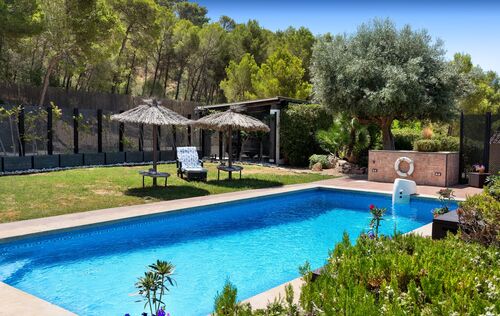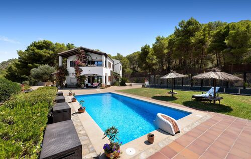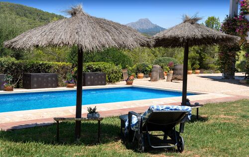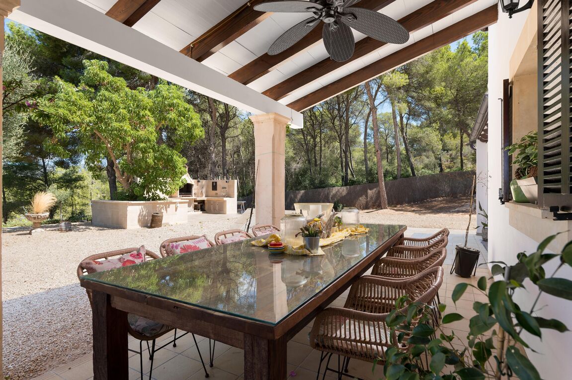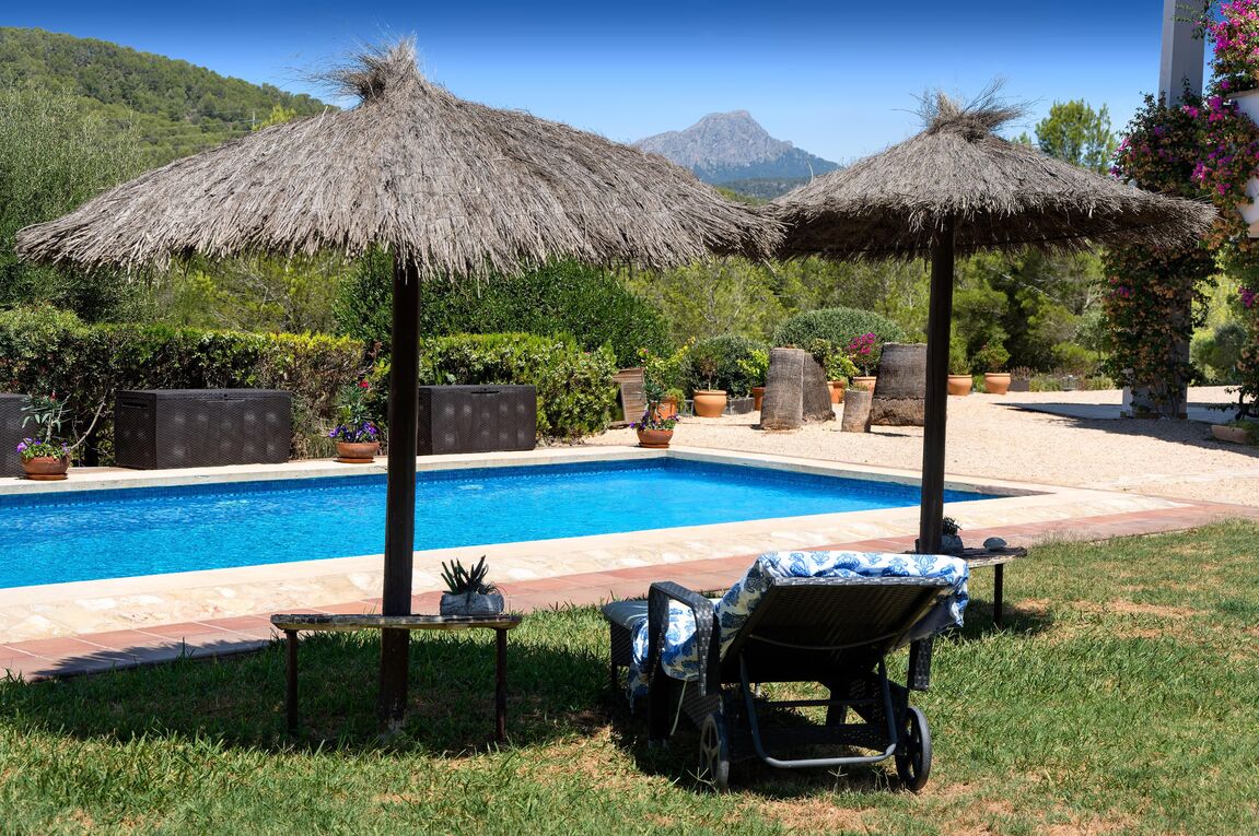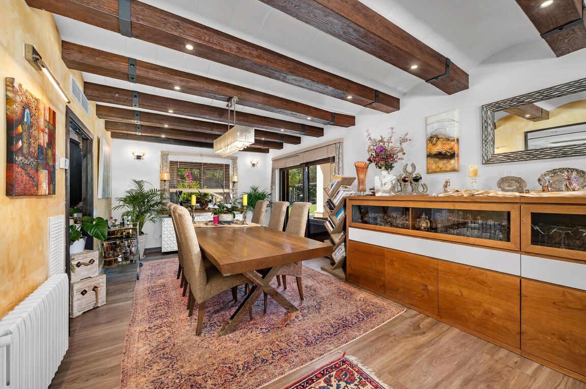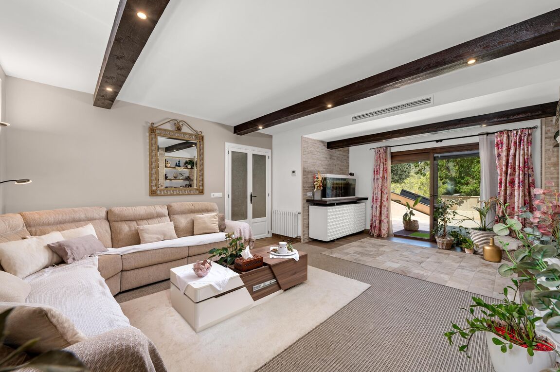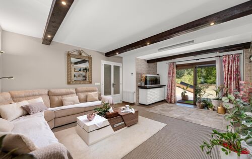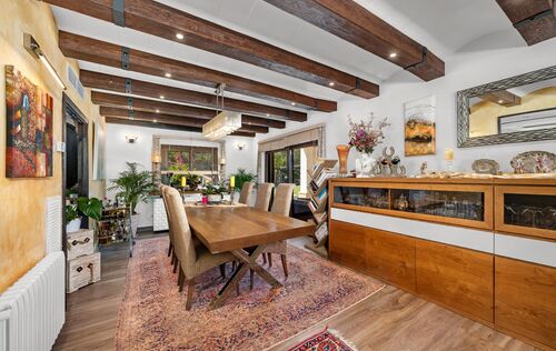 This exclusive finca is located in the sought-after area of Calvià and offers a unique living experience surrounded by nature. Set on a spacious plot of approximately 15,000 m², you can enjoy complete privacy and breathtaking, unobstructed views of the surrounding countryside. The charming property extends over two floors and has a total of five spacious bedrooms, ideal for families or guests. Bright rooms and high-quality materials create a warm and inviting atmosphere. Outside, you will find a magnificent pool with a counter-current system – perfect for athletic swimmers or relaxing hours under the Mallorcan sun. Thanks to the ideal south-facing orientation, you can enjoy optimal sunlight throughout the day. The finca combines rural charm with modern comfort and offers numerous possibilities for individual design. Here you can experience the tranquillity of nature without having to forego the amenities of Calvià and the beaches in the southwest of Mallorca.
