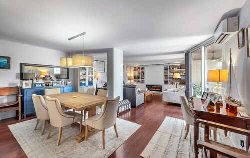 This apartment is located on the seventh floor with partial sea views, situated in one of the most valued and practical areas of Palma: the Paseo Marítimo. It is a very bright home, offering a spacious and cozy living-dining room with direct access to a pleasantly oriented terrace, ideal for enjoying the outdoors daily. The kitchen, of good dimensions, is fully equipped. The property is perfect for a family, as it has three bedrooms: the master with an en-suite bathroom, and two other bedrooms (one of them double), in addition to two additional full bathrooms. Among its amenities are split air conditioning, ceramic floors, aluminium carpentry, and a fireplace, providing comfort and functionality throughout the year. The building has an elevator, adapted access, and a privileged location with dual exits: both towards the Paseo Marítimo and towards the quiet residential area of Son Armadams. A very interesting option, both as a permanent residence and for those looking for a second home near the sea, with all services at hand and excellent connection to the center of Palma.