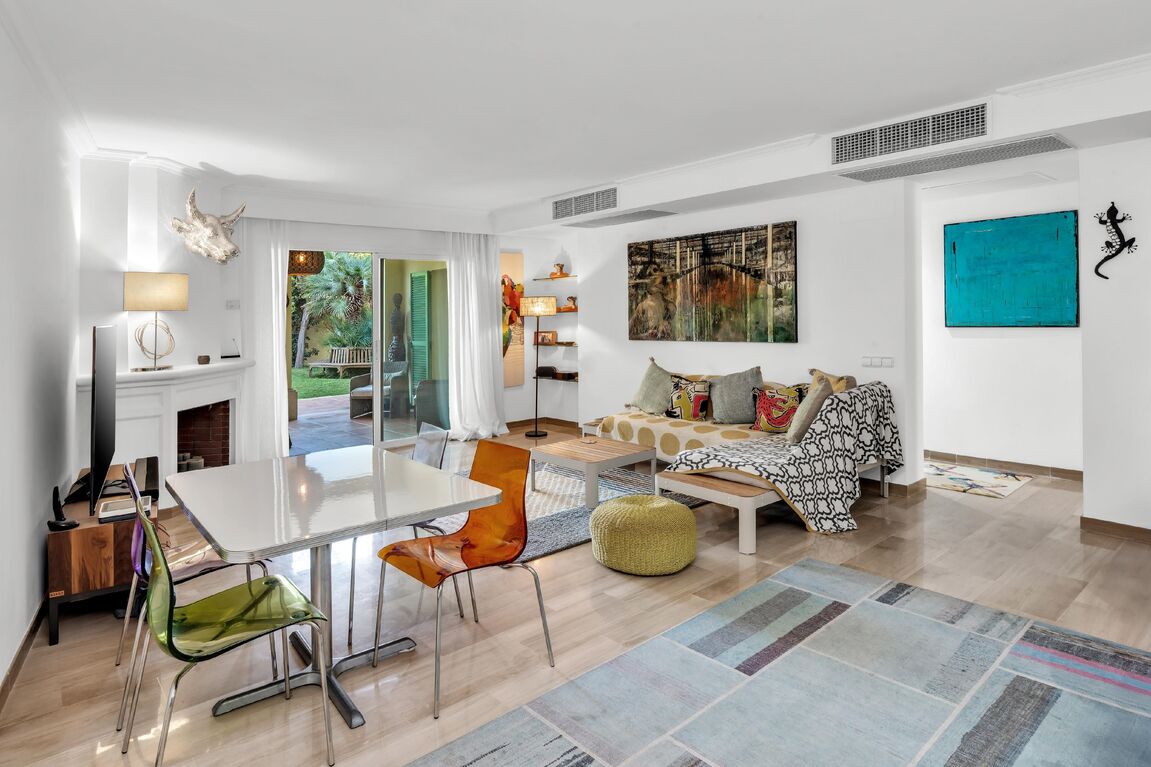 Located in the sought-after and picturesque community of Sa Vinya in Bendinat, this beautiful garden apartment perfectly combines modern comfort with Mediterranean charm. The property offers a thoughtfully designed layout featuring an open-plan living area with a modern, fully integrated kitchen that seamlessly connects to the lounge and dining space. There are two bedrooms and two bathrooms, including a spacious master suite with en-suite bathroom. The highlight of this apartment is its superb outdoor space: a generous covered terrace and a large private garden that opens directly onto one of the community’s lovely swimming pools. One of the bedrooms enjoys its own private back terrace, providing a quiet retreat. Additional features include private parking and a storage room, completing the comfort and convenience of this exceptional home. Whether as a holiday getaway or a permanent residence, this apartment captures the essence of Mediterranean living in one of Bendinat’s most desirable addresses.