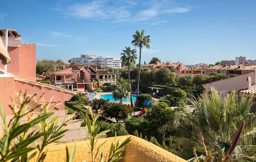 This bright Mediterranean-style penthouse is located in the sought-after area of Son Caliu, just a 5-minute walk from Palmanova beach and Puerto Portals. It is a privileged location that combines tranquility, the sea, leisure options and services. The property stands out for its abundant natural light thanks to its south-facing orientation and its comfortable layout, which perfectly separates the day area from the night area. It features 3 bedrooms; two of them share a full bathroom, while the master bedroom offers an en-suite bathroom. Additionally, it includes a loft space that can be used as an office, extra bedroom or for any other purpose. A ducted hot/cold air-conditioning system ensures year-round comfort. The outdoor spaces are another of its strong points. It offers a terrace on the main floor, ideal for everyday use, and a large private solarium with a barbecue area – perfect for entertaining guests, relaxing, and enjoying the Mediterranean climate. The community adds further value with its gardens, three swimming pools (two for adults and one for children), and a playground. A well-kept and pleasant environment, ideal for both families and those seeking a high quality of life. The property includes an underground parking space and two storage rooms, providing extra convenience and storage space. In short, this is a very attractive property due to its location, orientation, community and potential, ideal for those looking for a home to enjoy in summer or all year round.
