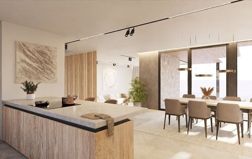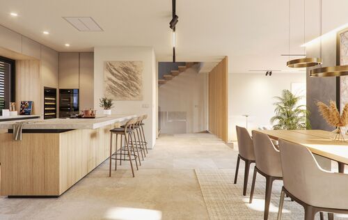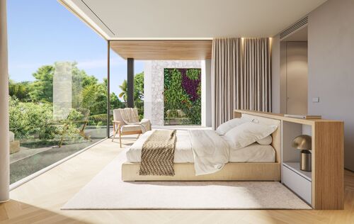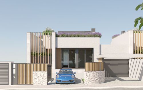 Experience the Mediterranean lifestyle in stylishly designed villas featuring private gardens and pools, spacious terraces, and in some cases sea views from the upper floor and the sunny rooftop terrace. Each villa includes access to a shared underground garage with two parking spaces and a spacious storage room. Additionally, there is a convenient outdoor parking space at street level directly at the entrance of each villa. The four villas each offer approximately 300 m² of living space. The upper floor comprises four bedrooms and three bathrooms; the master bedroom includes an en-suite bathroom and built-in wardrobes. The ground floor impresses with an open-plan kitchen and dining area that flows harmoniously into a split-level living room, with direct, step-free access to a spacious, sheltered terrace—ideal for social gatherings with family and friends. The modern design with Mediterranean flair is enhanced by a high-quality stone façade and elegant wooden details, while the private pool ensures maximum comfort and enjoyment. Inside, you can expect premium living comfort: underfloor heating, air conditioning, and a fireplace provide a pleasant atmosphere all year round. Optionally, there is the possibility to customize features such as a private gym or a sauna. Located just about a five-minute walk from the beach, this exclusive development of only four villas combines tranquility and privacy with immediate proximity to the vibrant city of Palma, the Bendinat golf course, and the renowned marina Puerto Portals. A perfect combination of relaxation and comfort—ideal both as a permanent residence and as a holiday home. Secure this rare opportunity to acquire one of these exclusive new-build villas. Prices start from €4,350,000. Construction is already well advanced, with completion scheduled for summer 2026. Feel free to contact us for further information and reserve your new home in this exclusive development.