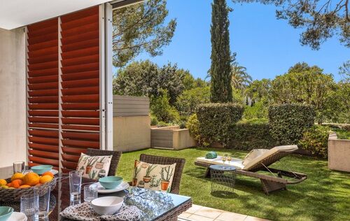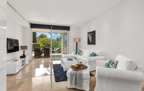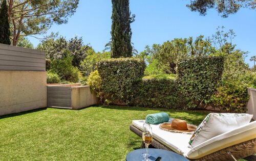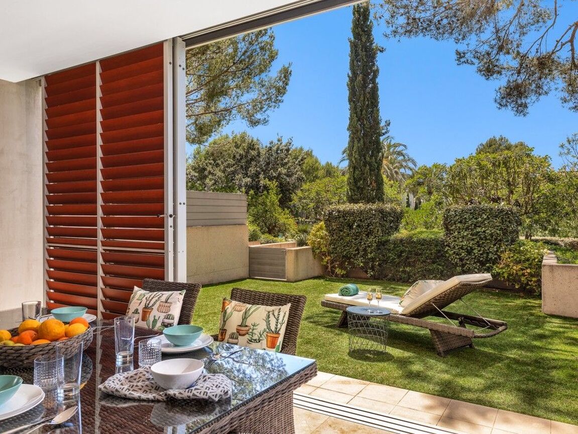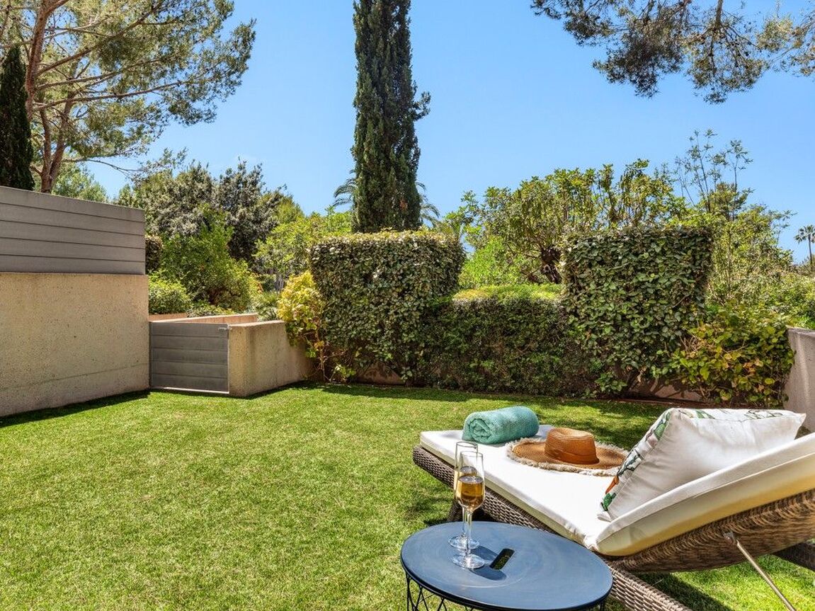 This charming garden apartment in Bendinat's most popular residential complex offers you a luxurious and comfortable holiday home. The apartment features a spacious garden area with southwest orientation and two fantastic terraces – perfect for relaxing and enjoying. With two bedrooms and two bathrooms, a convenient laundry room within the apartment, underfloor heating beneath the marble floors, and air conditioning, this property is perfectly equipped. The small, beautifully landscaped residential complex stands out with its park-like character and a perfectly maintained communal pool. A security service ensures your safety. The location is ideal: you can easily reach the sea, shops, a golf course, restaurants, and a supermarket on foot. Experience the highest level of living comfort in one of Bendinat's most sought-after areas!