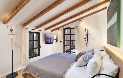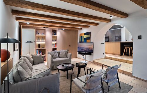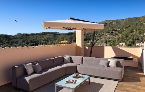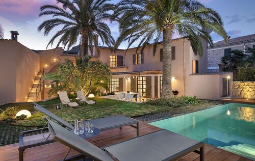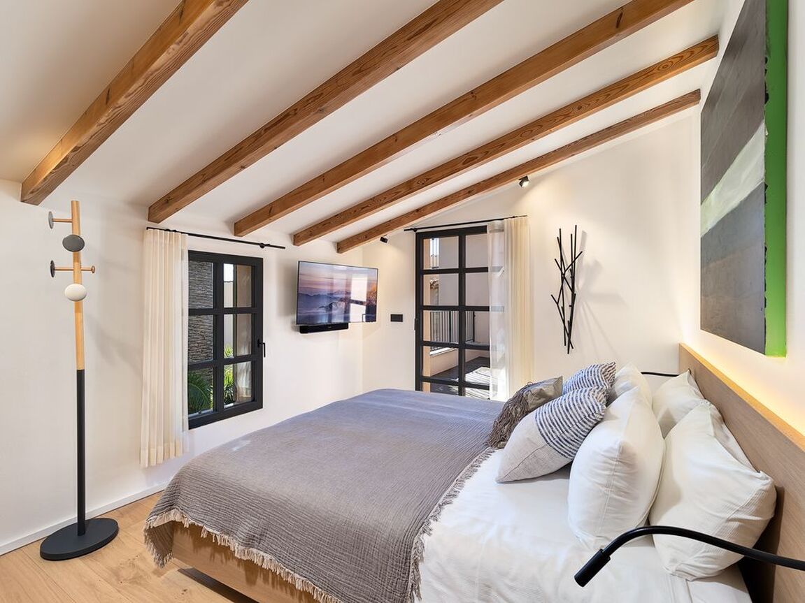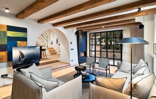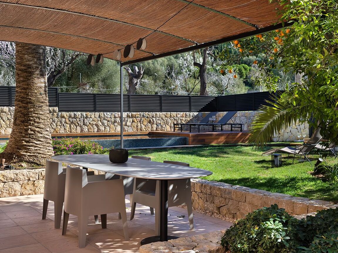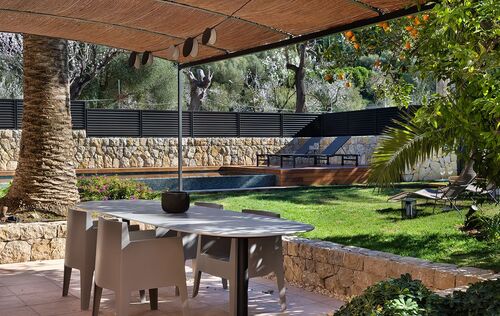 There are places that cannot be explained. You step inside and just know: this is the place. This property on the quiet outskirts of Andratx is one of those rare places. Nestled between almond groves, dry stone walls and the open expanse of the valley, it exudes an atmosphere that is both tranquil and powerful. The finca is located on the edge of Andratx, where the village ends and the countryside begins. It is a refuge for people with a sense of authenticity. Only a few minutes from the centre, yet far enough away to escape the hustle and bustle of everyday life. What is being created here is not a compromise, but a place for people who are looking for the essentials. At the centre of the finca is an intimate patio – bathed in sunlight, framed by palm trees, orange trees and an elegantly recessed infinity pool. This sheltered outdoor space feels like the heart of the house – a composition of nature, architecture and tranquillity that evokes the flair of a small boutique hotel. Except that here, everything is yours alone. The floor plan does not follow any classic norms, but rather the flow of life itself. The U-shape opens onto the garden, and the living areas flow into one another – kitchen, dining room, salon. The transitions are open, the lines of sight are deliberately set, and the light becomes part of the architecture. Upstairs are three bedrooms, each with an en-suite bathroom, dressing room or private terrace. The rooms are neither cool nor ostentatious, but warm, well-thought-out and pleasantly minimalistic. The architecture creates places for socialising and retreating – in tune with what really matters today: peace, clarity and quality. The transformation took place in 2021 – with uncompromising care and respect for the existing structure. Natural stone, wood, sand tones and custom-made fixtures combine with contemporary technology: underfloor heating, a high-end kitchen, designer fittings, air conditioning and an integrated lighting concept – for people who see comfort and taste as a natural unity. Small paths lead directly from the front door into nature – for example, to viewpoints above Sa Coma Freda or further through the Tramuntana mountains towards La Trapa. Port Andratx can be reached in around ten minutes by car. And if you love local life, you can be at the market square in Andratx in just a few minutes – surrounded by cafés, culture and authentic island life. Here, you don't just live somewhere – you live consciously. In the south. In the light. In your own space.