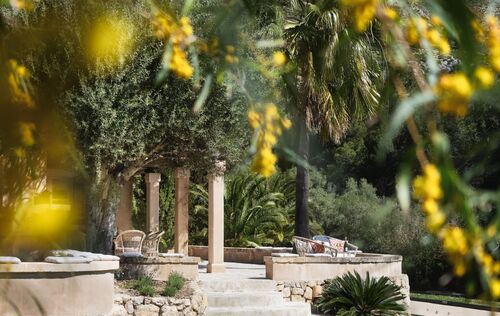This dream finca for sale is located in S'Arraco, an area that belongs to the exclusive Andratx region in the southwest of Mallorca. The location is characterized by its privacy and surrounding tranquility, while the nearby village is still only a few minutes away by car. The property benefits from a sunny location and extends over a spacious plot of approximately 6,041 m². The finca itself offers a total living area of approximately 227 m² and is equipped with four bedrooms and three bathrooms. Inside, the use of high-quality materials, such as Binissalem stone flooring, creates a stylish and authentic ambience. In addition to the tasteful interior, the finca has amenities such as central air conditioning, a heat pump with underfloor heating, and a fireplace, ensuring year-round comfort. A large swimming pool and an outdoor BBQ are available for socializing outdoors. The finca is also equipped with a license application for its own well and an infrared water purification system. A total of four parking spaces are available for vehicles. The finca was last renovated in 2019.