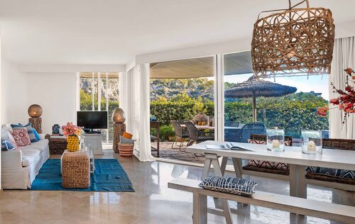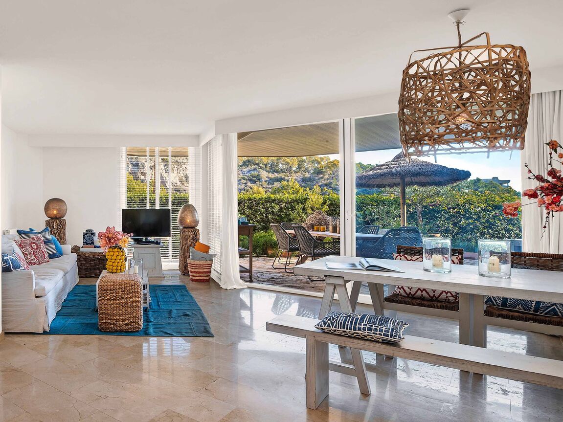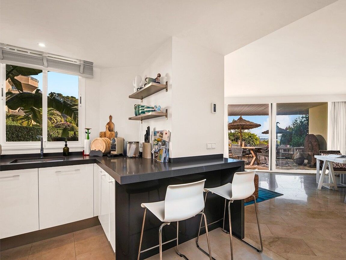This beautifully renovated garden apartment is located in a peaceful, exclusive community in Bendinat, offering spacious living and expansive private outdoor areas perfect for entertaining and taking in breathtaking views of Palma Bay and the serene, protected green surroundings. The apartment features a welcoming entrance foyer, a large open-plan living area with a fully equipped modern kitchen, guest toilet and an adjoining laundry room. The master bedroom boasts an en-suite bathroom, while three additional generously sized bedrooms share a separate bathroom. Additional highlights include hot/cold air conditioning, a central heating system, private outdoor parking, an additional space in the underground garage, and a storage room. The community is further enhanced by a lovely pool area with panoramic views of the surrounding landscape and the sea.