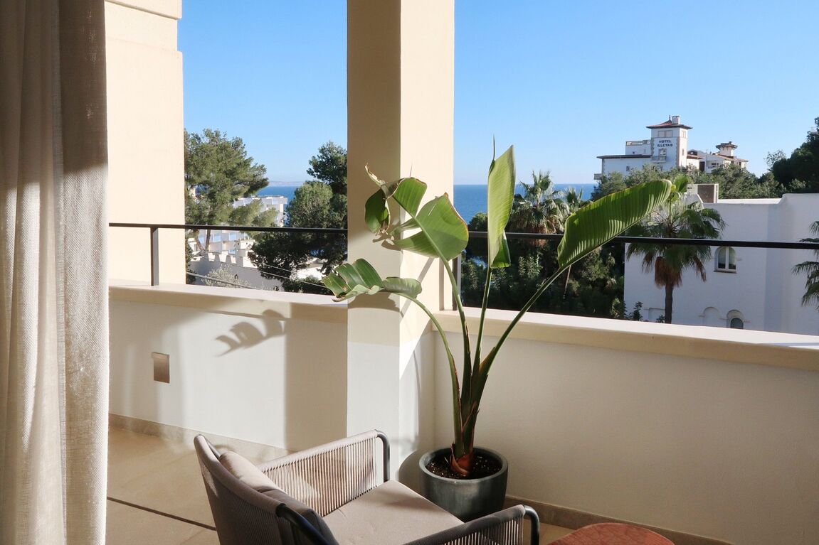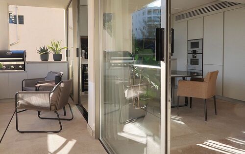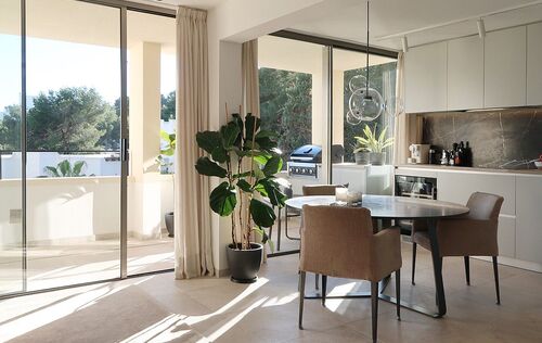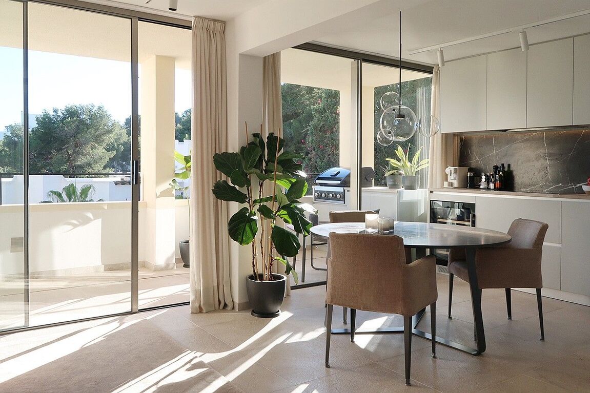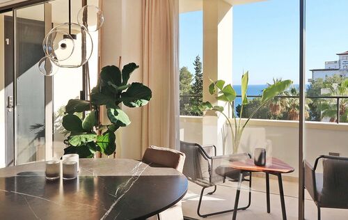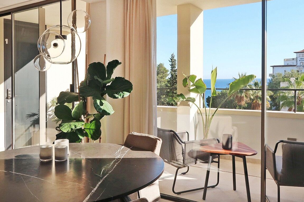 This radiant apartment, located in a prime spot just west of Palma in Illetas, is a vibrant and versatile living space designed to maximize sunlight and sea views! The open-plan layout features a contemporary kitchen and lounge, perfect for entertaining or relaxing. You'll find two comfortable bedrooms and two sleek bathrooms finished with natural stone. Step outside onto the south-facing terrace and discover an additional kitchen with a BBQ, ideal for al fresco dining while enjoying the stunning sea views. A community pool is just below, perfect for a refreshing dip. This apartment boasts top-of-the-line features from trusted brands like Roda, Barzaghi, Iconico, and Gaggenau, as well as Flos and Giopato & Coombes lighting, resulting in a functional and stylish space with clean lines and a calming aesthetic. Enjoy the convenience of a Sonos Music System in all rooms, underfloor heating, AC, a washing machine, and a wine fridge. One secure parking space is included. The renowned sandy beach and crystal-clear turquoise waters of Illetas, home to the exclusive Puro Beach Club, are just a five-minute walk away. You're also within easy reach of Port Calanova, Cala Major beach, Puerto Portals, and the famous Royal Bendinat golf course. Best of all, the furniture is included, making this apartment move-in ready!