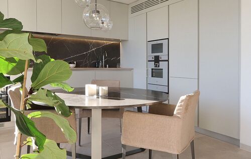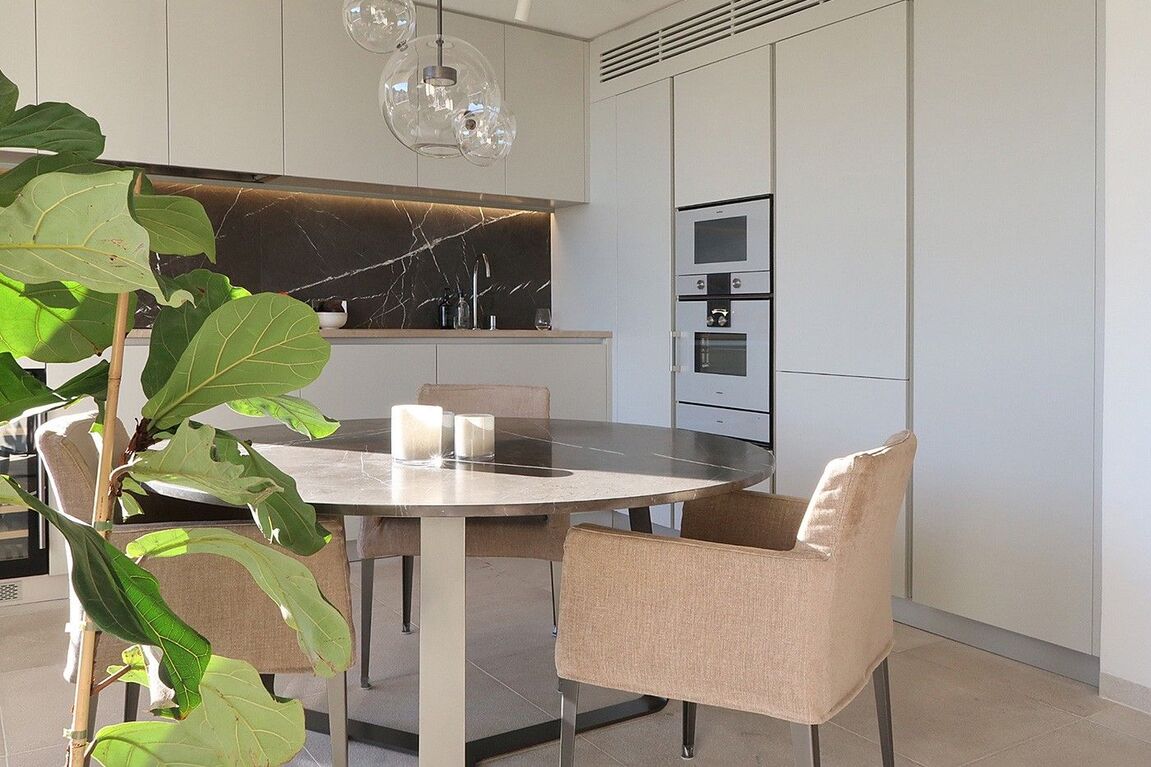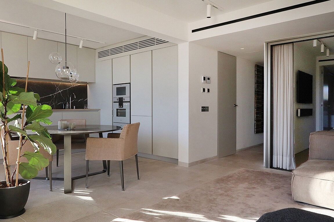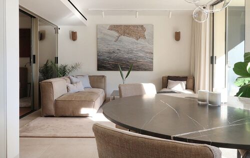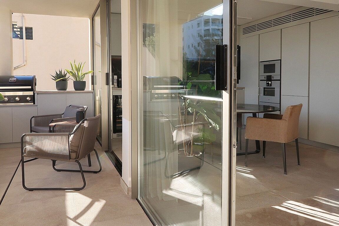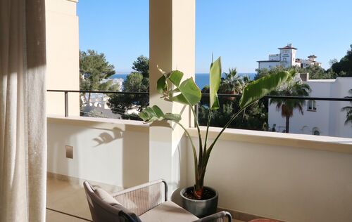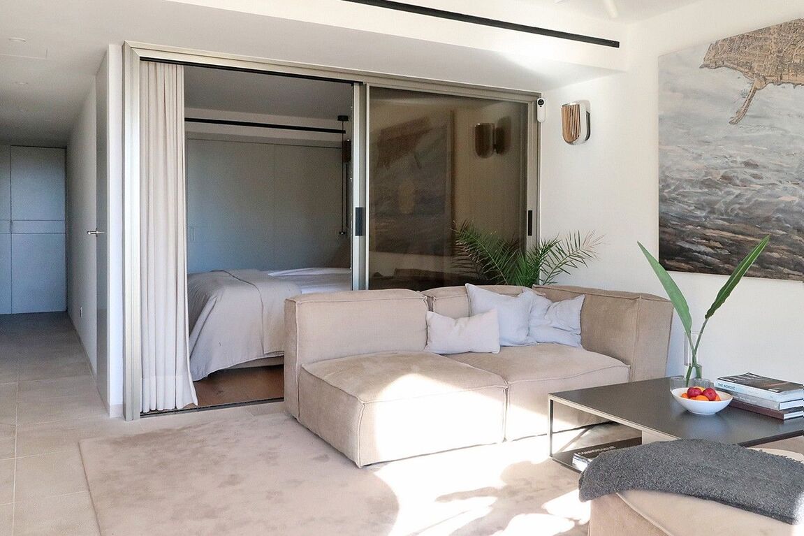 This radiant apartment, located in a prime spot just west of Palma in Illetas, is a vibrant and versatile living space designed to maximize sunlight and sea views! The open-plan layout features a contemporary kitchen and lounge, perfect for entertaining or relaxing. You'll find two comfortable bedrooms and two sleek bathrooms finished with natural stone. Step outside onto the south-facing terrace and discover an additional kitchen with a BBQ, ideal for al fresco dining while enjoying the stunning sea views. A community pool is just below, perfect for a refreshing dip. This apartment boasts top-of-the-line features from trusted brands like Roda, Barzaghi, Iconico, and Gaggenau, as well as Flos and Giopato & Coombes lighting, resulting in a functional and stylish space with clean lines and a calming aesthetic. Enjoy the convenience of a Sonos Music System in all rooms, underfloor heating, AC, a washing machine, and a wine fridge. One secure parking space is included. The renowned sandy beach and crystal-clear turquoise waters of Illetas, home to the exclusive Puro Beach Club, are just a five-minute walk away. You're also within easy reach of Port Calanova, Cala Major beach, Puerto Portals, and the famous Royal Bendinat golf course. Best of all, the furniture is included, making this apartment move-in ready!