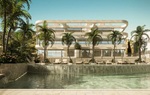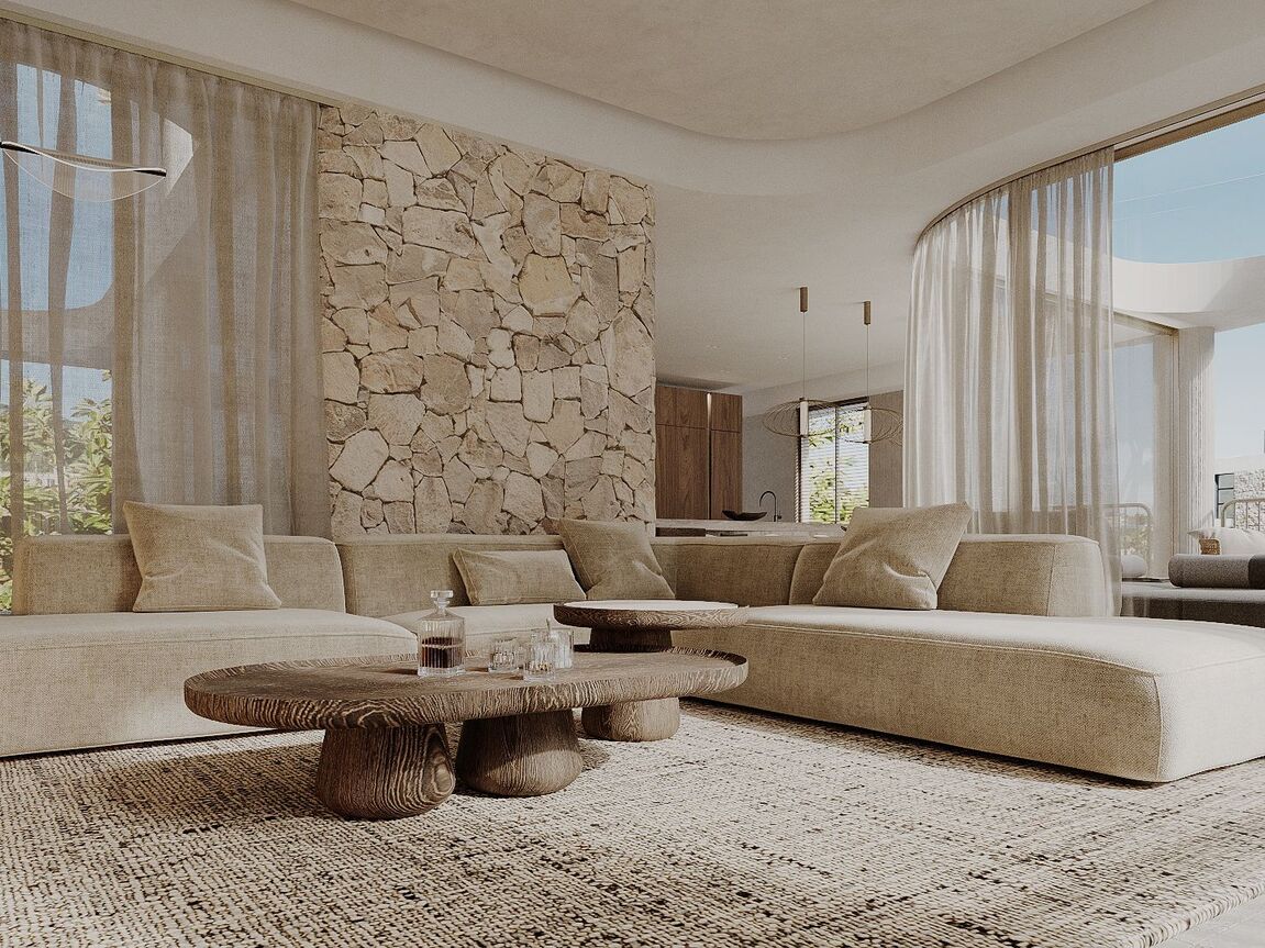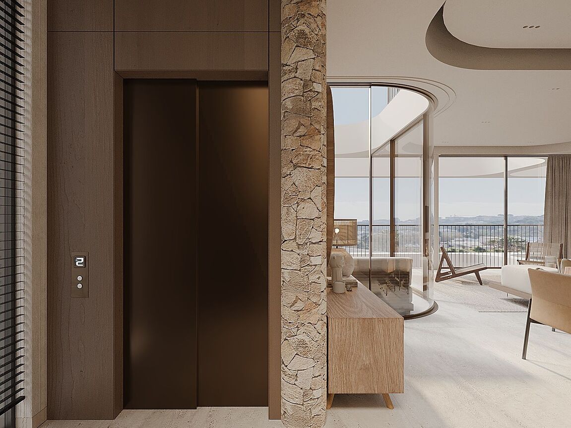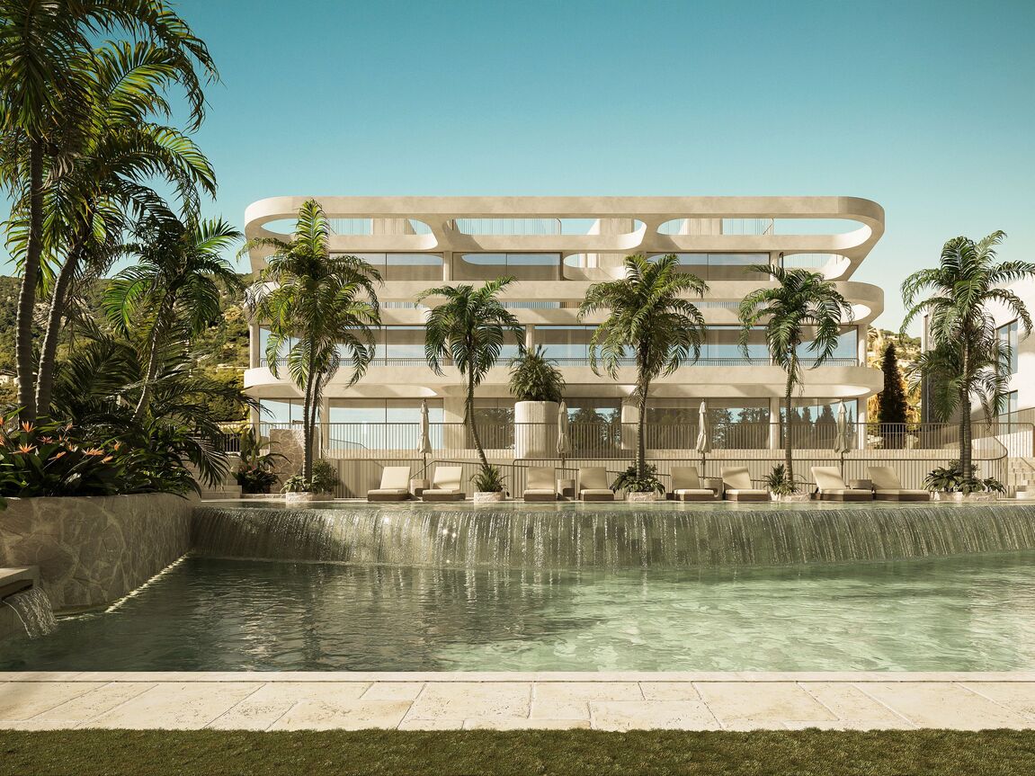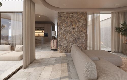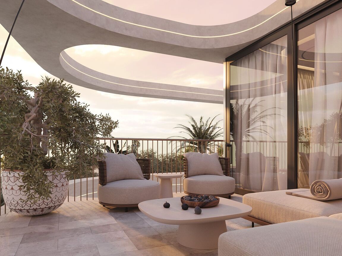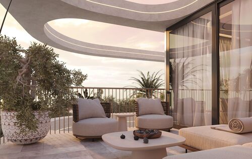 Located in a quiet residential area in Palma’s coastal suburb of San Agustín, the exclusive new development Monaco Suites will be built. The total of five south-facing residences are divided into two spacious garden suites with private gardens and three duplex penthouses with private rooftop terraces and stunning sea views. Each apartment offers three bedrooms and three bathrooms — two of them en suite — as well as a guest WC. The open-plan living and dining area features a custom-designed kitchen equipped with high-end built-in appliances from Gaggenau and Miele. Large floor-to-ceiling sliding doors allow plenty of natural light to flood the interiors and provide direct access to the private outdoor spaces. In addition to a terrace on the main living level, the penthouses feature a large private rooftop terrace with breathtaking views of the sea and the lush mountain landscape. A particular highlight is that each penthouse has a private elevator, which connects the garage directly to the apartment and links both floors. The garden apartments, both on one level, each have a private staircase leading up from the garage. Additional features include: a KNX smart home system, gas fireplace, built-in wardrobes and walk-in closets, high-quality marble floors (Atlantic Grey), and two underground parking spaces per unit. Year-round comfort is ensured by air conditioning and underfloor heating powered by an a heat pump. In addition to the private outdoor areas, all residents have access to a generously designed communal pool with sun deck, as well as lushly landscaped communal gardens — a green oasis in close proximity to the city and the beach. For those who wish to stay active after a relaxing day by the pool, a fully equipped, air-conditioned gym is available on site. The Port Cala Nova marina, with its cafés and small shops, and the beautiful sandy beach of Cala Major are within walking distance. Palma’s city centre is just about a 10-minute drive away. Several international schools, golf courses, and numerous sports facilities are also located nearby.