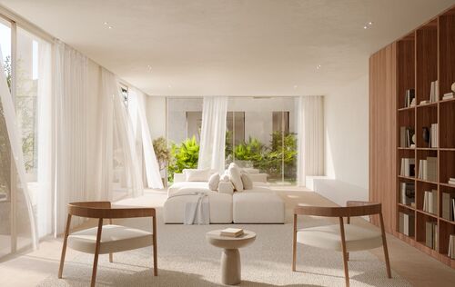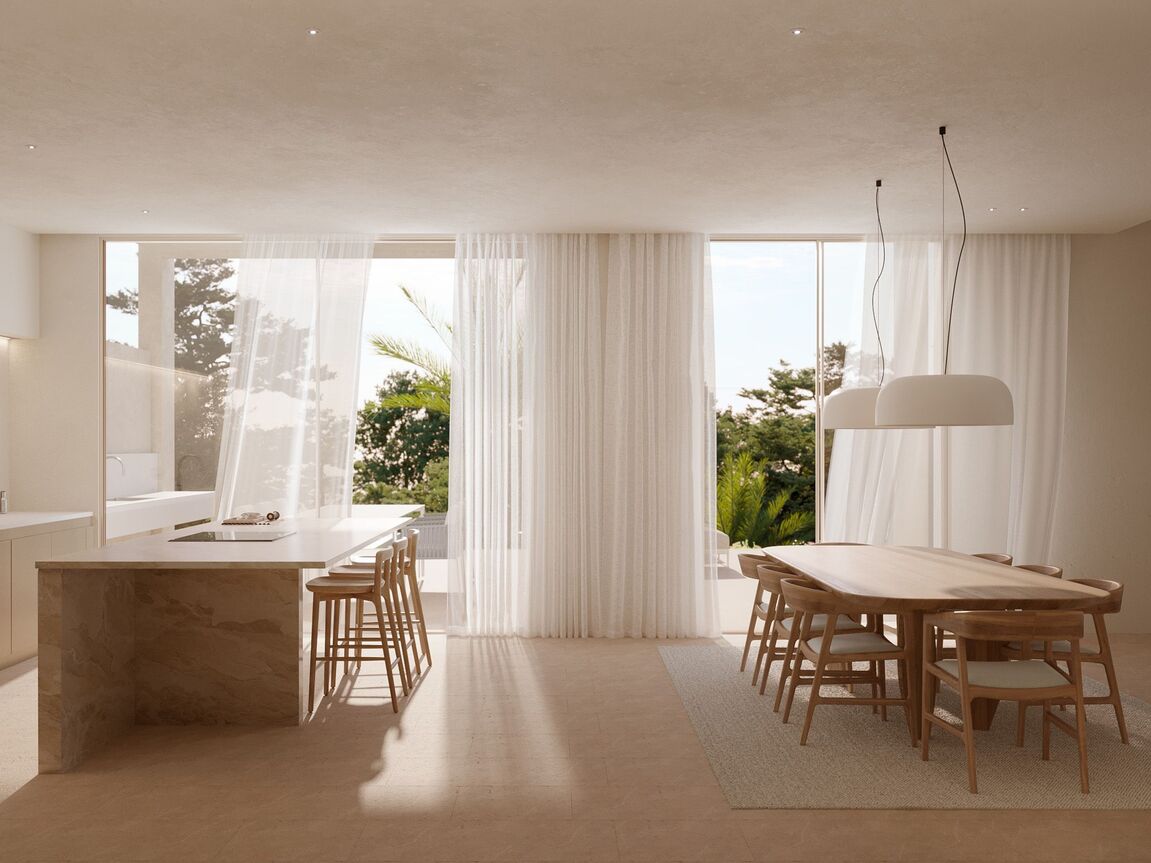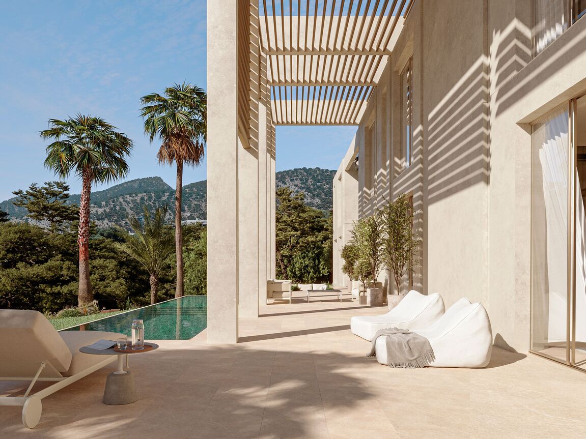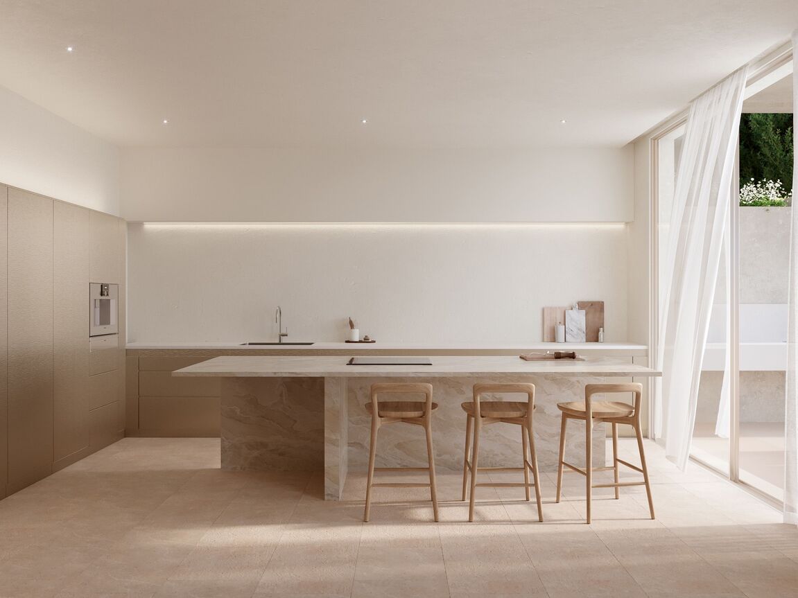 This exceptional newly built villa is located in one of the most exclusive areas of south-west Mallorca and offers a perfect combination of luxury, comfort and privacy thanks to its design and layout. The front area impresses with a spacious entrance with a private paved driveway and parking for three vehicles. A foyer leads to an external staircase, an internal staircase and a lift connecting all floors. The upper floor houses the master bedroom with a large en-suite bathroom, a dressing room and a private terrace that invites you to relax. Two further bedrooms, each with their own en-suite bathroom and balconies, offer privacy and comfort. In addition, there is another duplex guest room, which is only accessible via a separate staircase. This room also has its own bathroom and a balcony, making it the perfect retreat for guests. On the ground floor is the spacious living room with adjoining open-plan kitchen by the prestigious Bulthaup brand, equipped with high-quality appliances by Gaggenau. All rooms have direct access to the partially covered terrace, which leads to the elegant swimming pool and combines maximum comfort indoors and outdoors. Also on this floor is the lower level of the duplex guest room with its own living room and dining room, offering guests complete independence. The laundry and technical rooms are located in the basement. Further features include: outdoor fire pit, 4-person jacuzzi, patio, lift to all levels, Pool of 17m length and an external guest apartment.