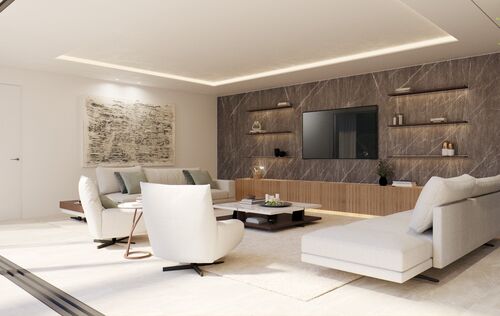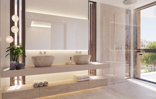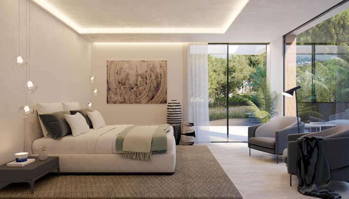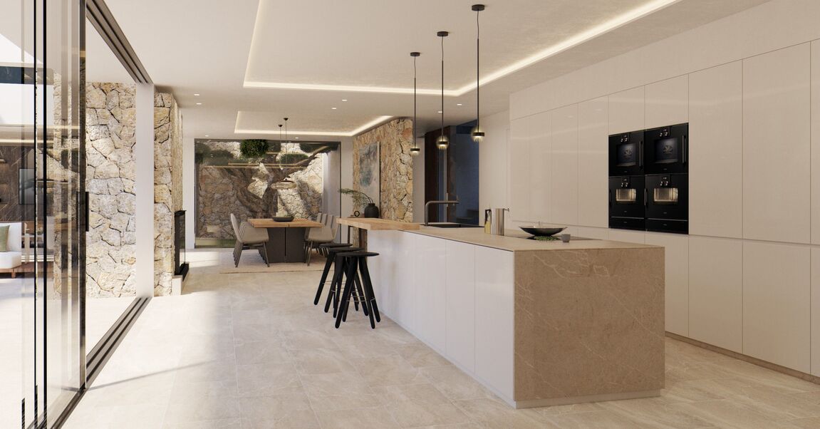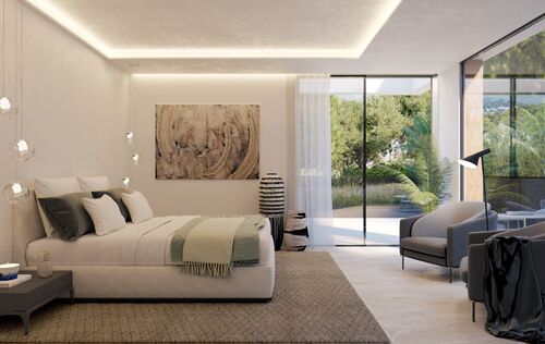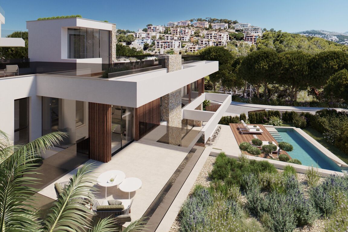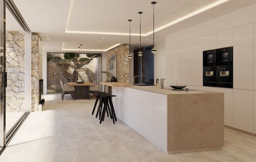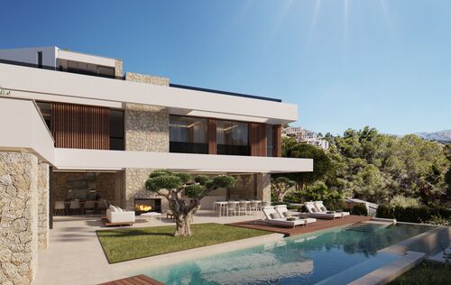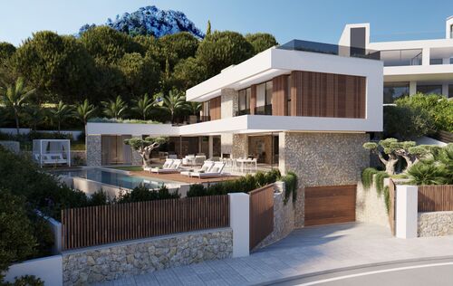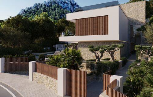Welcome to this luxurious oasis in the heart of Cala Llamp, one of the most exclusive areas of Port Andratx. This impressive new development combines Mediterranean elegance with modern comfort and offers an unrivaled lifestyle. The villa, with a total area of 518.32 m², extends over three floors and features a generous infinity pool, extensive terraces, chill-out areas and a lush garden that surrounds the entire property. The modern fence on the street side ensures privacy, and the house is accessed via the pedestrian gate or the garage door on Orada Street. An outside ramp leads to the underground garage with space for two large cars and additional storage space for motorcycles or bicycles. The ground floor, with a living area of 195.25 m², impresses with an open-plan living and dining area, a modern kitchen, a guest toilet and a bedroom with an en-suite bathroom and access to the patio. Upstairs, there are three generously sized bedrooms, each with its own bathroom. One of the rooms also has a walk-in closet and a private terrace. The roof terrace offers breathtaking views of the surrounding mountains and spectacular sunsets. High-quality materials and first-class equipment – including aerothermal and solar technology – ensure a luxurious and sustainable living experience. Every detail has been carefully selected to provide you with the highest level of comfort and maximum privacy. A unique opportunity for a luxurious lifestyle in one of the most sought-after locations in Mallorca!