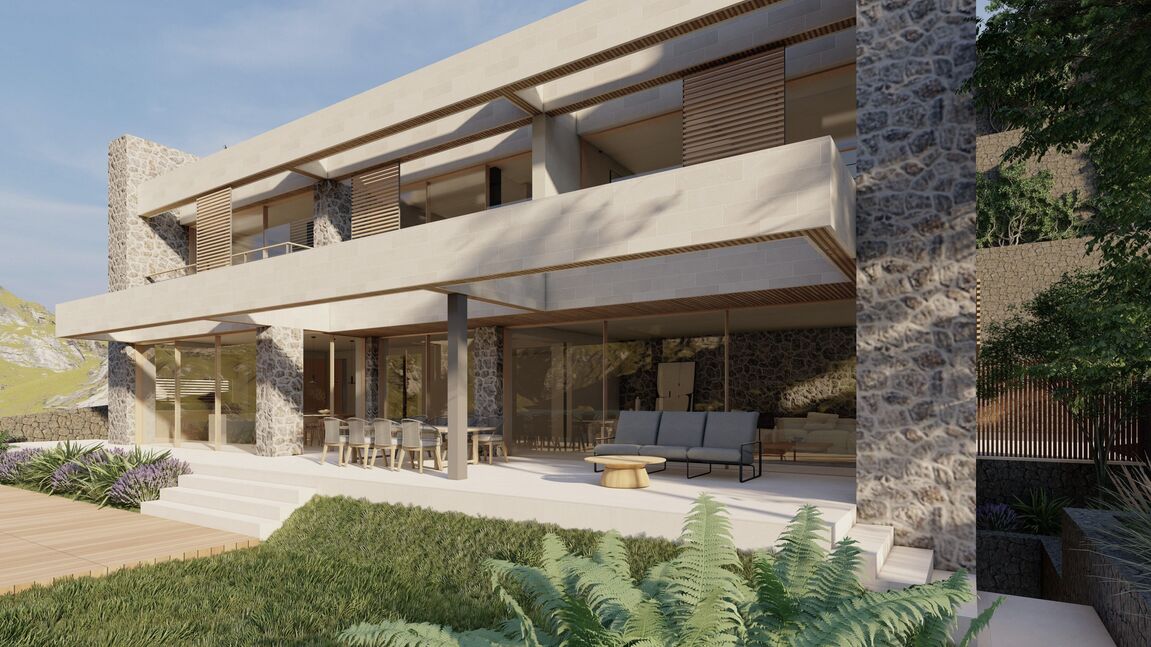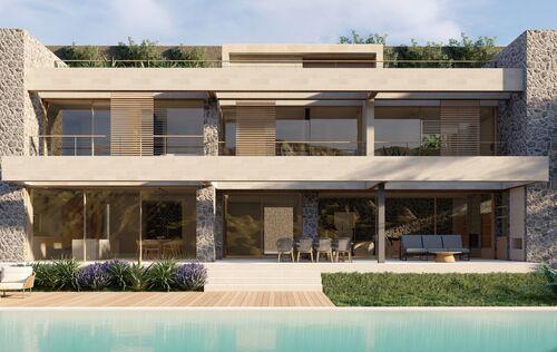 An exceptional plot with unparalleled views of the sea and harbor – in a quiet, private location. The approved construction project comprises a luxurious main villa (648 m²) with three en-suite bedrooms and a separate guest house (149 m²) with two en-suite bedrooms. The building permit has already been granted, so construction can begin immediately. The project includes a spacious 67 m² infinity saltwater pool, an exclusive spa and sauna area, a home theater, and a fitness and yoga area. A modern elevator connects all levels, complemented by a wine cellar and a main and secondary kitchen. There are also five parking spaces, some of which are covered. The property covers 1,250 m² with a total area of 797 m² and a living space of around 395 m². This is a rare opportunity to create a bespoke luxury home with professional support.