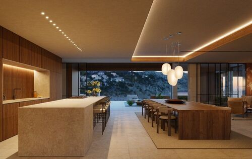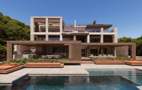 A new standard of luxury living that combines the hedonistic lifestyle of a villa with ever-changing views of the Mediterranean. “One La Mola” is a beautiful, modern property where you can enjoy nature in fresh gardens, gaze at the horizon from tranquil terraces and merge with the Mediterranean in the pools. Outside the garden door is an exclusive private jetty that gives access to Cala Marmacen; one of the few places in Mallorca where you can anchor a yacht right in front of the house. The design of the villa is inspired by space - luxury (constructed area of 1,063m2), balancing size, harmony and personality. Elegant spaces designed with the highest level of comfort. This unique property will leave nothing to be desired! The project includes 6 bedrooms, 8 bathrooms, roof terrace, underfloor heating, air conditioning hot/cold, jacuzzi, wellness area with sauna and gym, wine cellar, several pools, elevator, cable car, double garage, barbecue areas, a garden and terrace area of approx. 1,375m2, sea access and a private boathouse with jetty. The existing stately property in the first sea line is located on the exclusive peninsula of La Mola. It impresses with its location, views, size, absolute privacy and a private boathouse. A beautiful Mediterranean-style garden leads to the private sea access and the jetty. The sought-after promenade of Port Andratx with several restaurants, stores and bars is within walking distance. The sale price includes the existing, ready-to-move-in estate and gives the new owner the opportunity to realize the villa “One La Mola” themselves in the future.
