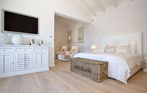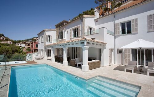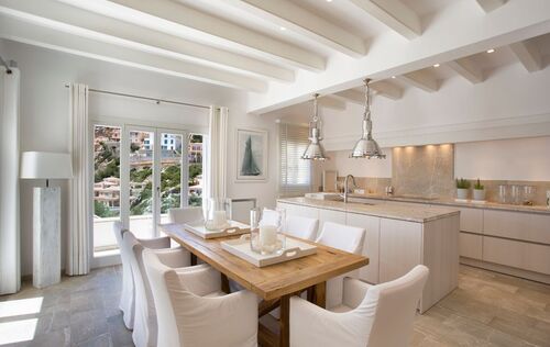 This throughly refurbished villa built in the bright “beachhouse”-style is located at the end of a small private street in an exclusive residential area of Puerto de Andratx, the prominent fishing and marina port in the southwest of Majorca. The 1042 m² large plot with a nicely invested garden is situated on a hill and does therefore offer spectacular views to the open sea. The house combines highest quality materials in a generous ambiance with several extras such as the bodega and the separate guest house. Alongside the spacious floor plan of the property with two levels and overall five bedrooms, the oil-fired central heating, air-condition (w/c), a fireplace and a double garage which can be accessed via the patio are further extras. A separate guest house offers two more bedrooms with bathrooms. The unique location of the property with unforgettable sunsets in the sea makes this villa an exceptional adventure.