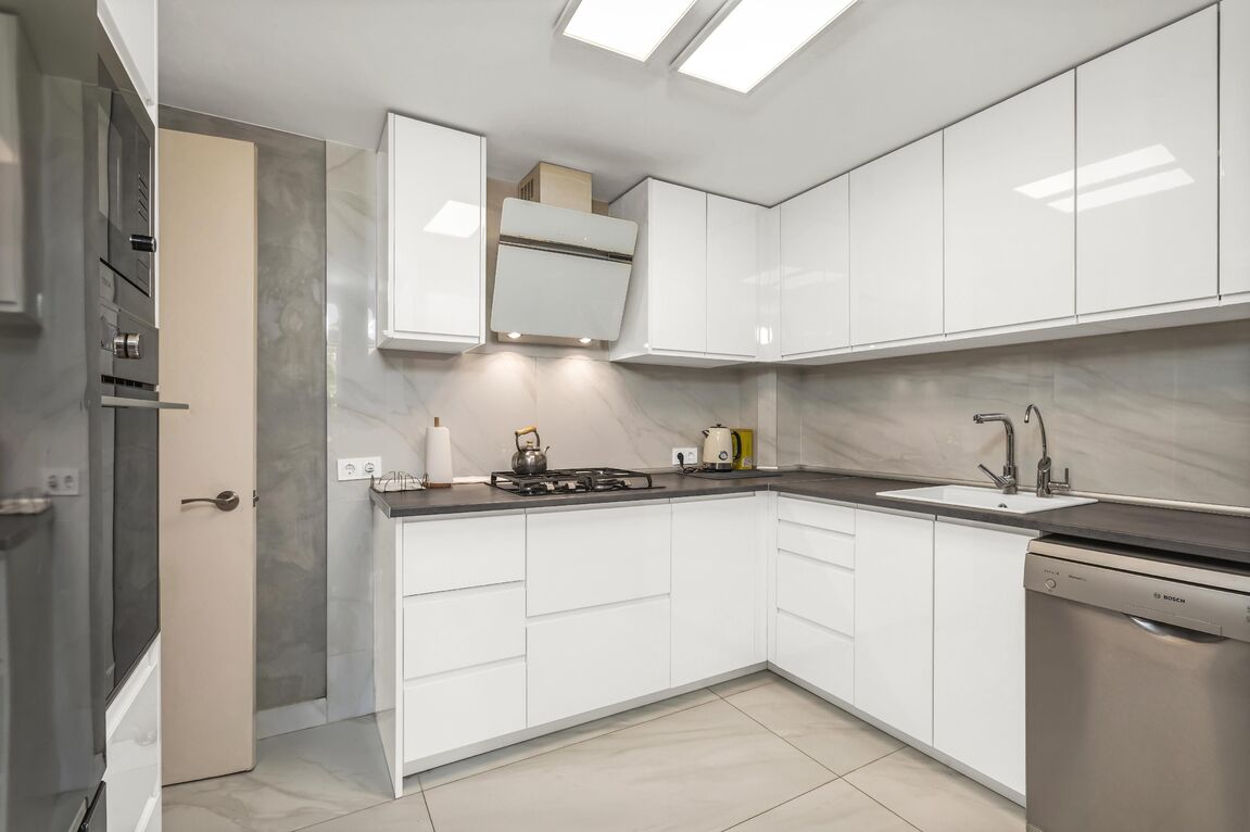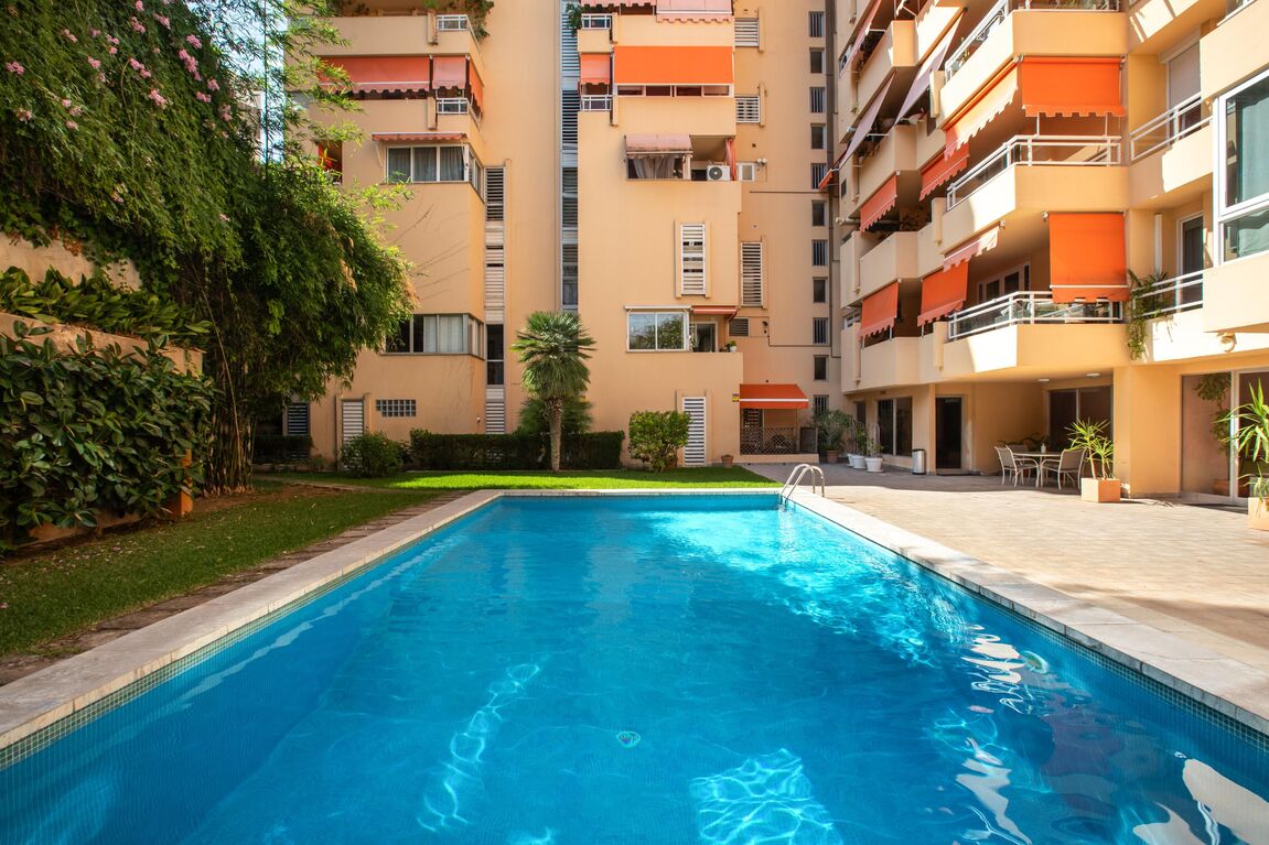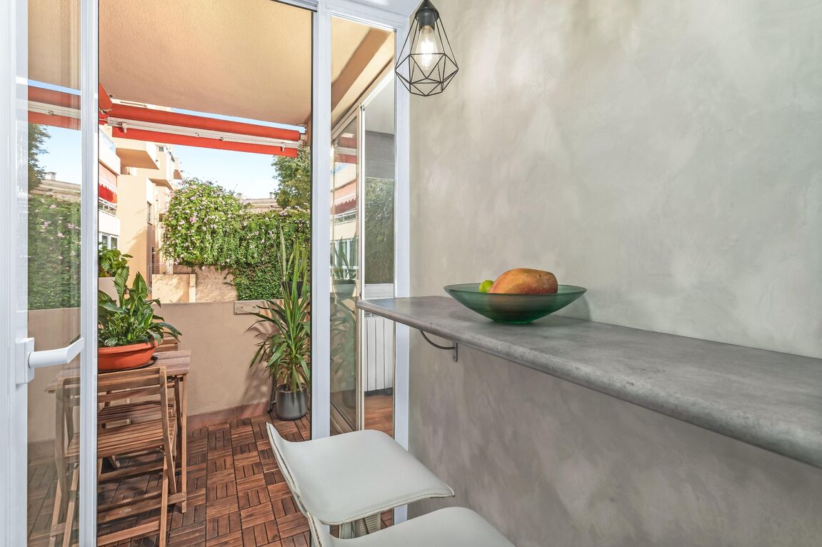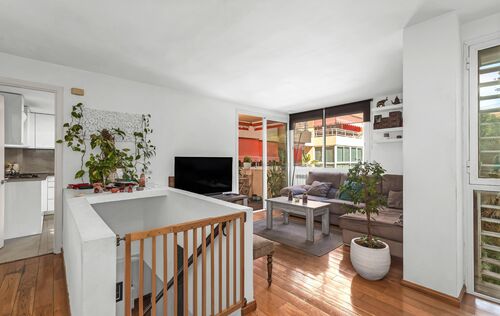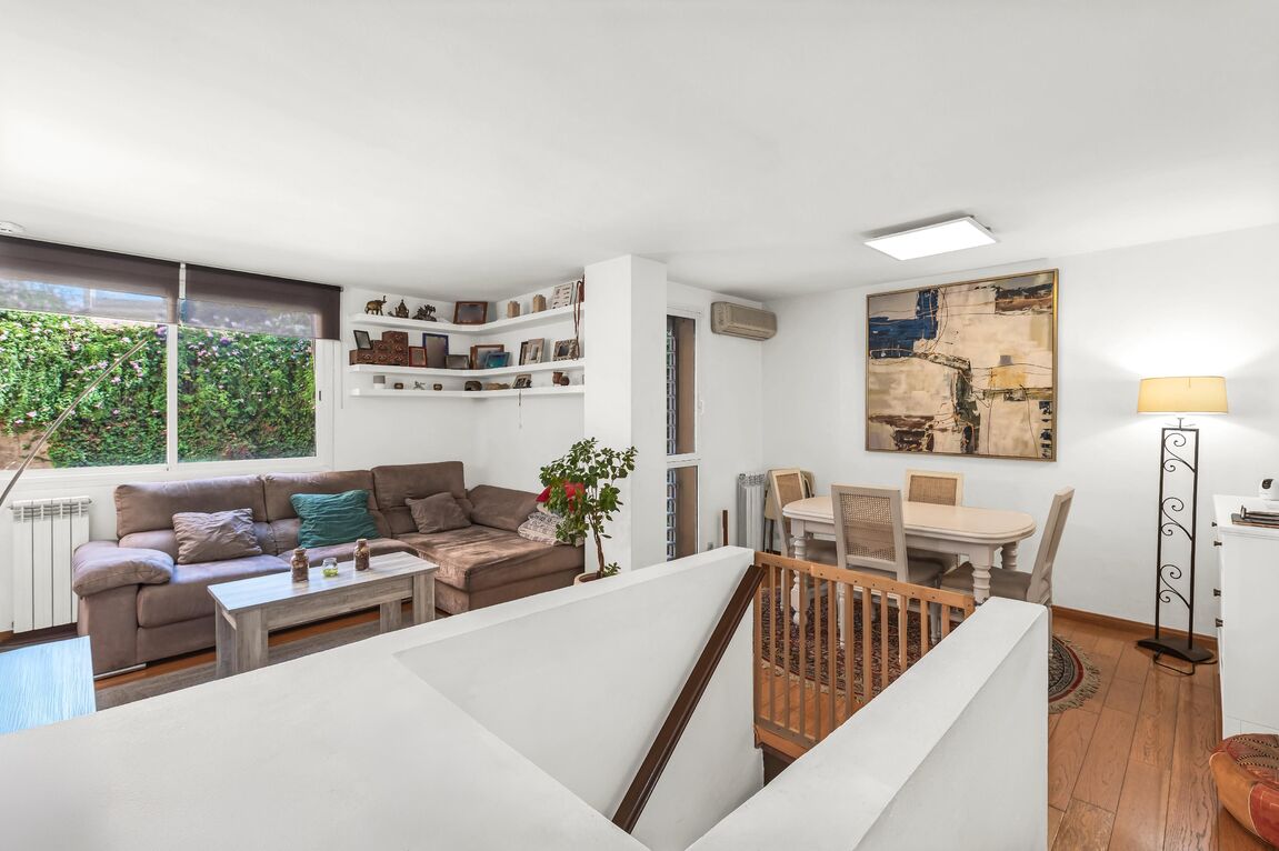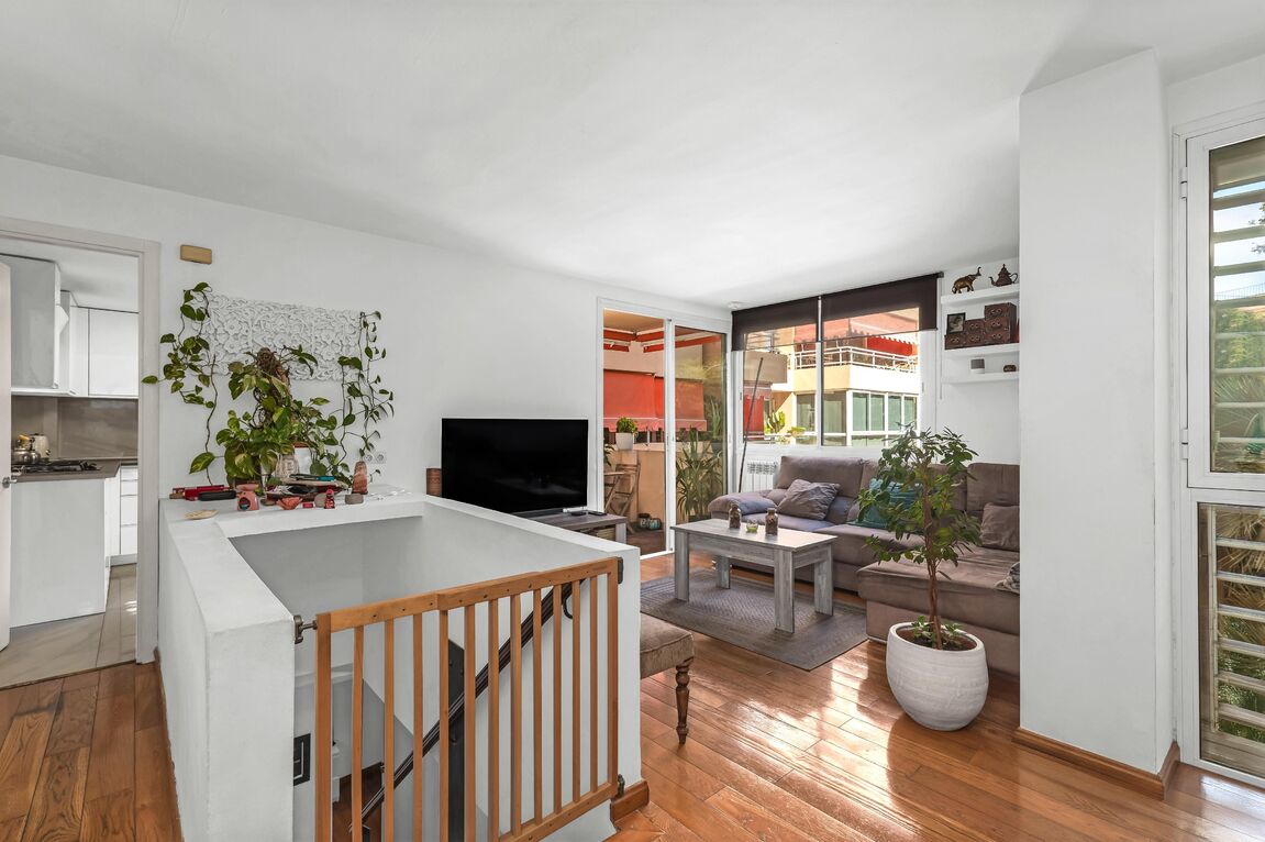 This elegant family apartment, with great attention to detail, stands out for its functional layout across two levels and its warm, welcoming atmosphere. On the main floor, a spacious, fully equipped kitchen integrates seamlessly with the bright living and dining area, which opens directly onto a charming terrace – perfect for relaxing or enjoying pleasant moments with family and friends. A guest toilet completes this level. The lower floor features three comfortable bedrooms, including two generous double bedrooms, each with its own private terrace – the ideal spot to start the day outdoors or enjoy the Mediterranean ambiance in total privacy. The master bedroom offers a large dressing area, while the third room can serve as a home office or guest bedroom. A modern and elegant bathroom adds the final touch of comfort and style. The exclusive residential complex offers its owners a beautiful garden and a communal swimming pool, creating a true oasis of calm and well-being in the heart of Palma. In addition, the property has an underground parking space, which can be purchased as an option. Ideally positioned in a sought-after area of Palma, this delightful home enjoys an excellent location just a short walk from the renowned Porto Pi shopping centre and the seafront promenade. Palma’s city centre is only a five-minute drive away, and the airport can be reached in around ten minutes.