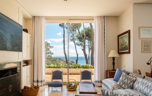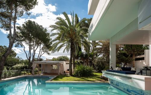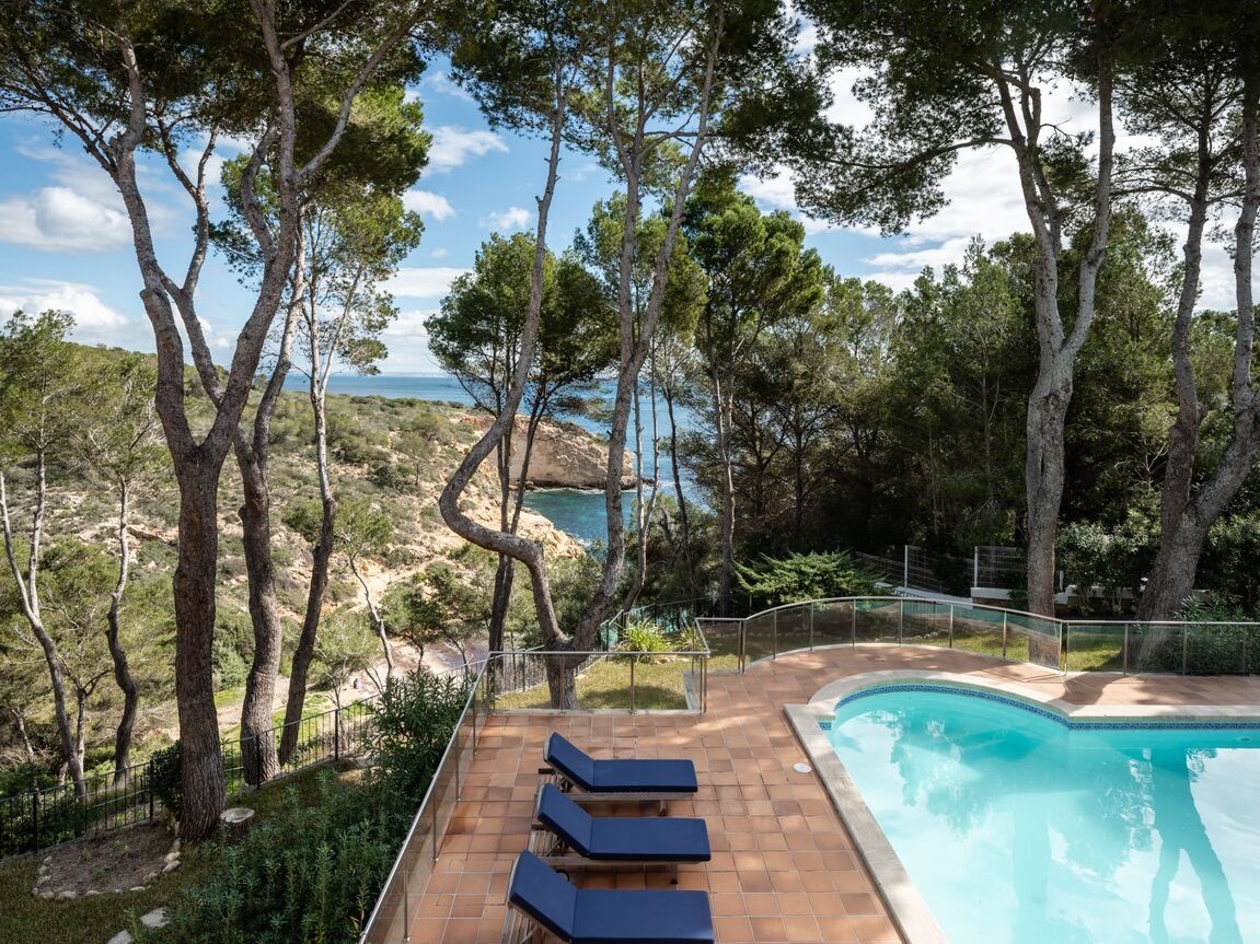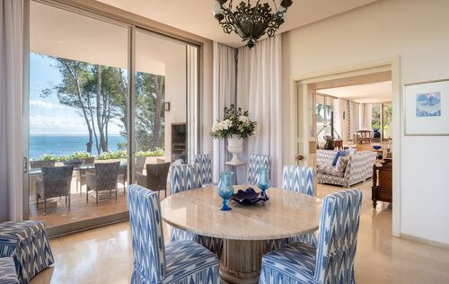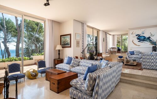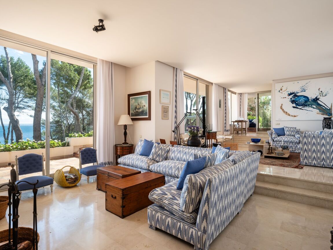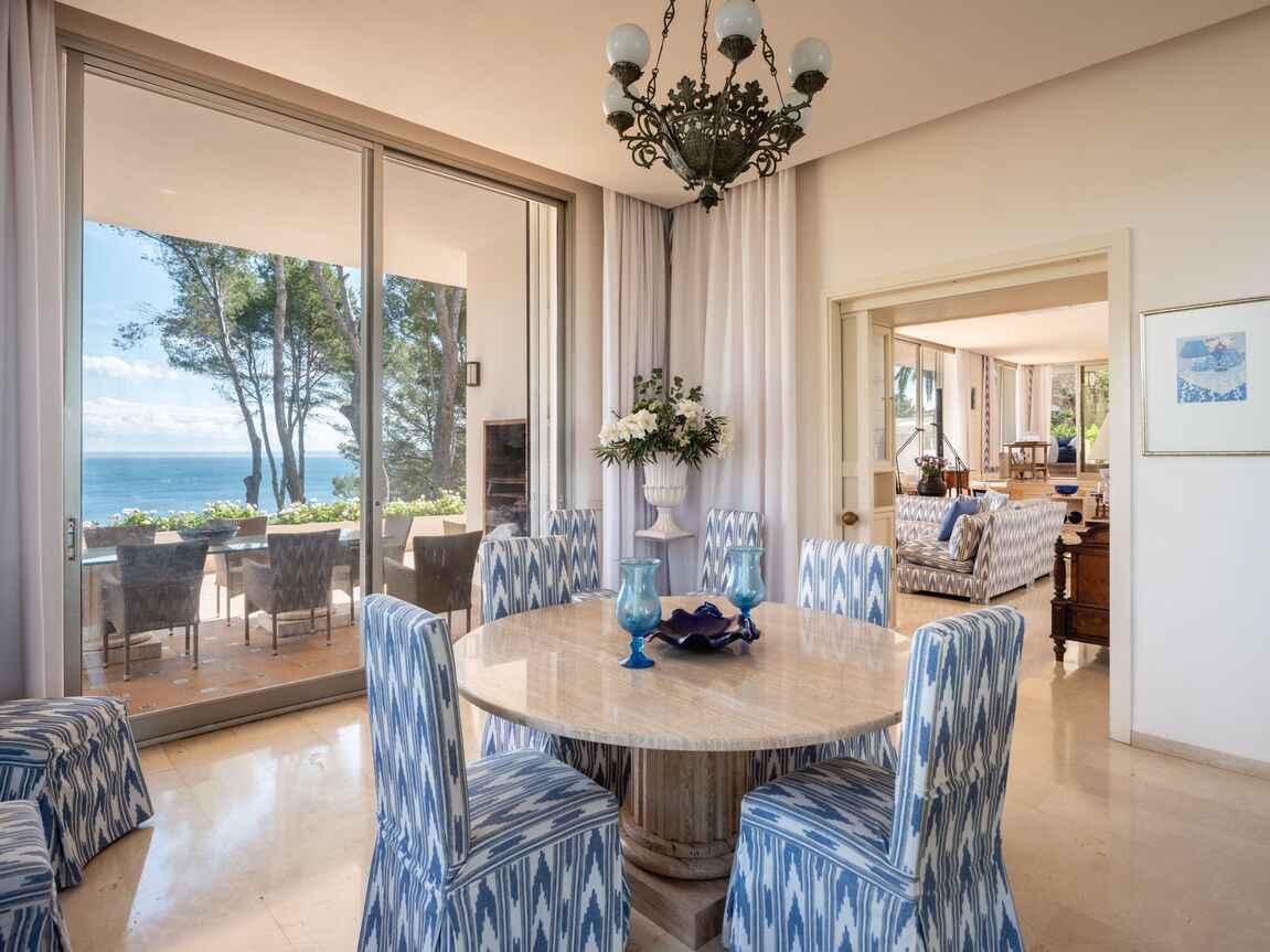 The villa is situated at an exceptional location first line to the sea in Sol de Mallorca on a large plot of apx. 4000 m2 and with private access to a small sandy beach with turquoise water. The house was built in 1986 and is in its original state, therefore makes it the perfect opportunity for the future owner to transform it into his dream home. The living area of approx. 500 m2 is distributed over three floors and offers numerous bedrooms (currently 7 bedrooms), bathrooms and living areas. The outdoor space with wide terraces, garden and swimming pool are ideal to entertain guests or for a large family. The position of the house, the complete privacy and its easy and direct access to the sea are a real luxury that only few properties in Mallorca are able to offer. The exclusive neighborhood of Sol de Mallorca is merely 20 km from Palma and a short drive to the up and coming Port Adriano and the established Puerto Portals, shops, amenities and infrastructures are also a 5 minute drive away.