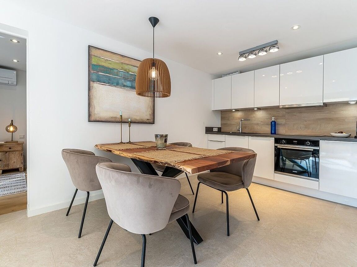 The bright apartment impresses with its location, furnishings, views and privacy. The charming property was completely renovated in 2021 with "attention to detail" and is the ideal „starter model“ for a holiday home. The flat is located in a small, well-kept Mediterranean complex directly on the famous "BeachClub" with sea access, saltwater pool and restaurant. The property offers sufficient privacy and the special feature compared to other flats is that the apartment has its own private entrance/access. The open terrace and the small garden invite you to sunbathe every day. The harbour promenade of Port Andratx with a variety of restaurants, bars and shops can be reached in a few minutes by car. Special features include: American kitchen, air conditioning hot/ cold, underfloor heating throughout, 2 bathrooms en suite, a small garden as well as an open terrace and a communal pool.