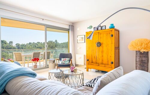 This bright apartment is located in the popular residential complex "La Floresta del Mar" in Sol de Mallorca, only a few minutes walk from the small beach Bella Donna. It consists of three bedrooms, two bathrooms, one en-suite, a guest toilet, a large living room with access to a sea view terrace, a kitchen with utility room. The property also has air conditioning, gas central heating and underground parking. The complex has beautiful mediterranean gardens, two community pools and a paddling area. During the day there is a concierge service.