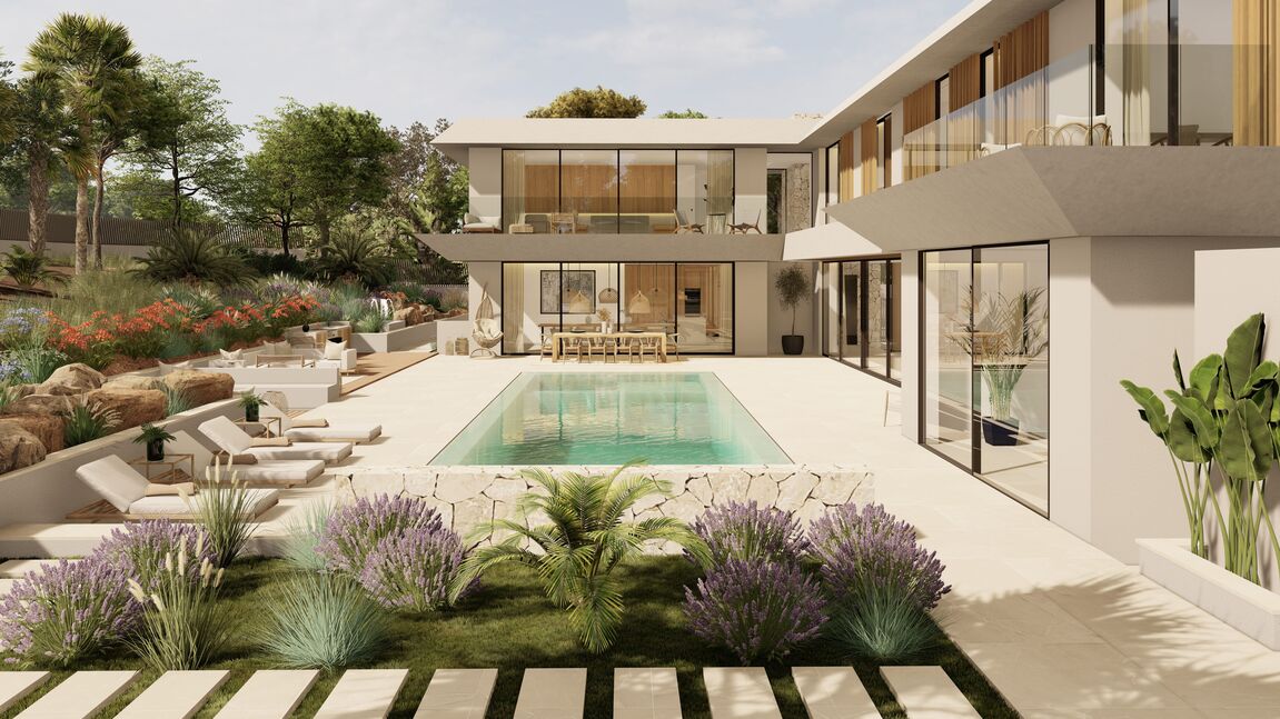 This exclusive new-build villa in the peaceful surroundings of Nova Santa Ponsa impresses with its stylish design, harmoniously combining Mediterranean and modern style elements without sacrificing practical usability. The living space of approximately 967 m² is spread over three floors, all conveniently accessible via an elevator, which is also beneficial for people with limited mobility. The villa offers the highest living comfort, including an open designer kitchen, complemented by a professionally equipped second kitchen, ideal for passionate chefs. Additionally, the property features a spacious living and dining room with a fireplace, six bedrooms, six bathrooms, a utility room, and a multifunctional room that can be used as a guest apartment or for staff. The first-class amenities, a wellness area, and a double garage complete this offering. Outside, you will find a covered terrace, a swimming pool (pre-installed for pool heating), additional covered seating areas, an inviting garden, and an outdoor kitchen with barbecue facilities. For leisure activities, several golf courses, the charming Santa Ponsa marina, the luxurious Port Adriano harbor, and a country club with original Wimbledon grass courts are available. Enjoy the luxurious life in Santa Ponsa!