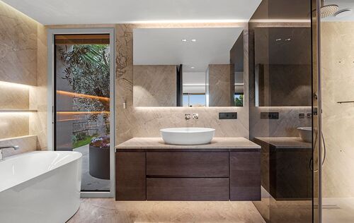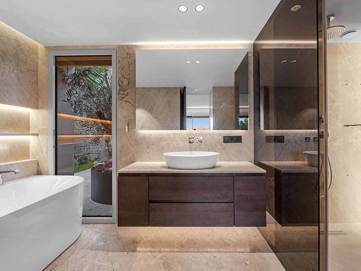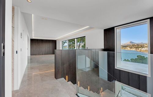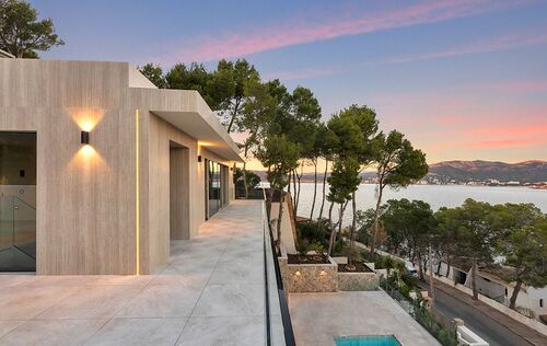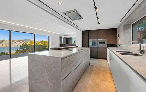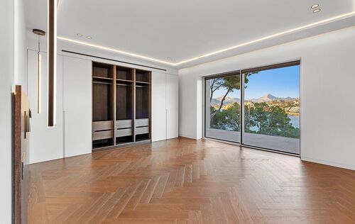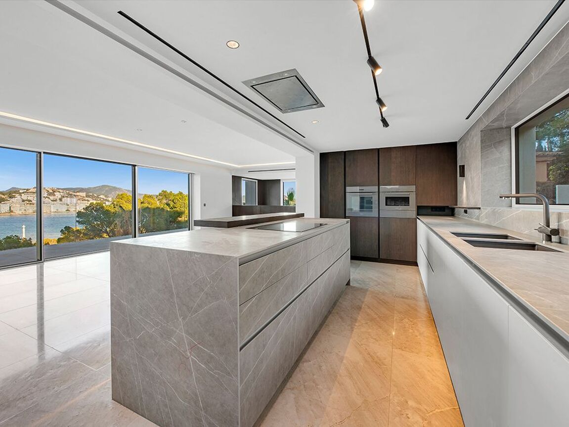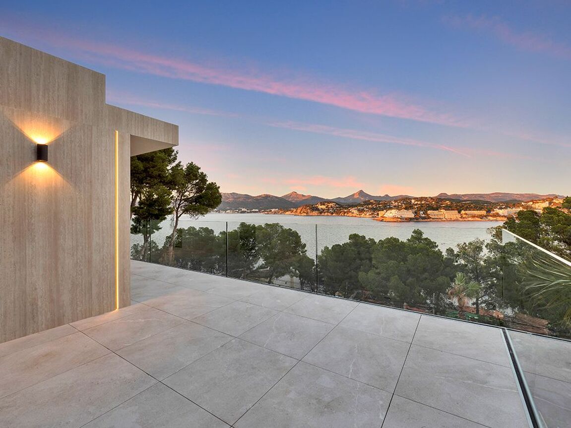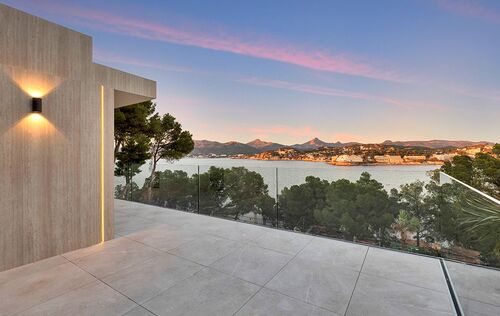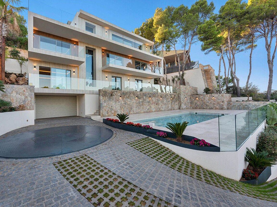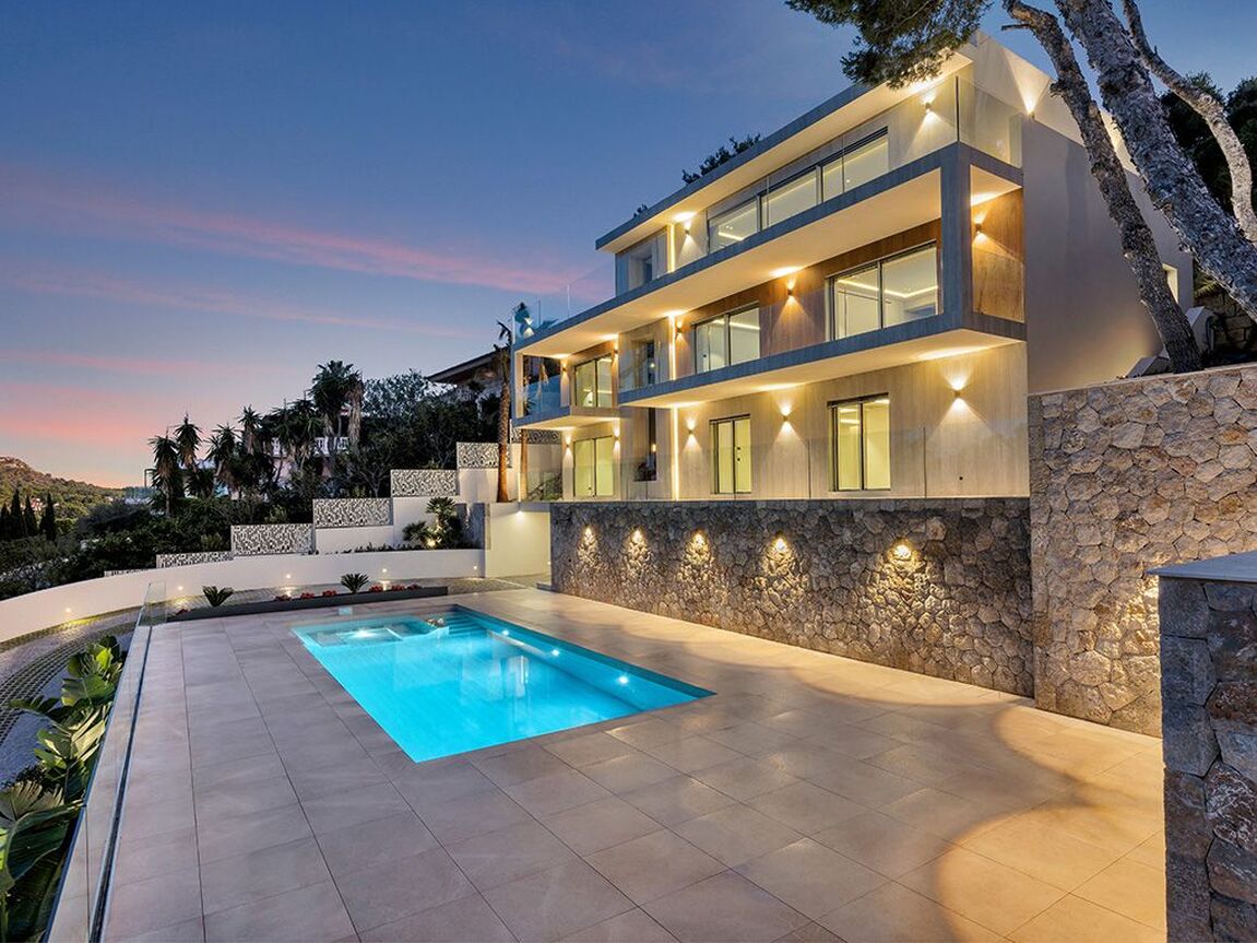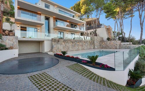 This fantastic sea view villa has just been completed and is now ready to move into. This exceptional property meets the highest standards in terms of conceptual design, quality and technical standards. The elevated position of the property guarantees optimal privacy as well as a fantastic view of the sea. When designing the villa, emphasis was placed not only on design and high-quality materials but also on everyday practicality. For example, a lift connects all levels of the villa so that people with restricted mobility can also make good use of the property and a turntable makes it easier to park and unpark the upper garage - those who prefer to park their car at street level can do so in the garage, which is almost 50 square metres in size. The layout of the property has been designed to maximise views - and a bright, modern living design skilfully combines traditional Mallorcan style with modern elements. On the living level, the designer kitchen and the living room merge into one another - the sea view is omnipresent, as it is from all other levels of this fantastic sea view villa. There is also a bedroom level with three bedrooms, each with its own bathroom, and a basement which, in addition to the gym and interior pool, offers further space for a variety of uses, such as a further bedroom with its own bathroom. If you are looking for variety, you are spoilt for choice - Santa Ponsa offers numerous leisure activities and families in particular love this place, which has virtually everything to offer: a climbing park for children, sports harbours where sailing or diving courses can also be taken, golf courses and even original Wimbledon tennis courts are available to sports enthusiasts at the country club. Extras: lift, underfloor heating (air-heat pump), air conditioning, gym, 3 garage spaces. If you are looking for variety, you will be spoilt for choice - Santa Ponsa offers numerous leisure activities and families in particular love this place, as it has almost everything to offer: a climbing park for children, sports harbours where sailing or diving courses can be taken, golf courses and even original Wimbledon tennis courts are available for tennis enthusiasts at the country club. Extras: lift, underfloor heating (air heat pump), air conditioning, gym, 3 garage spaces.