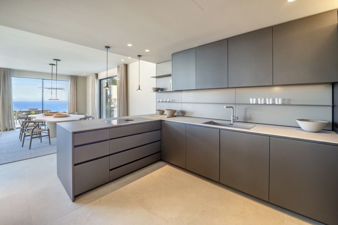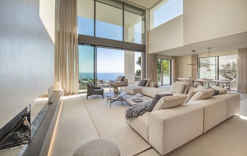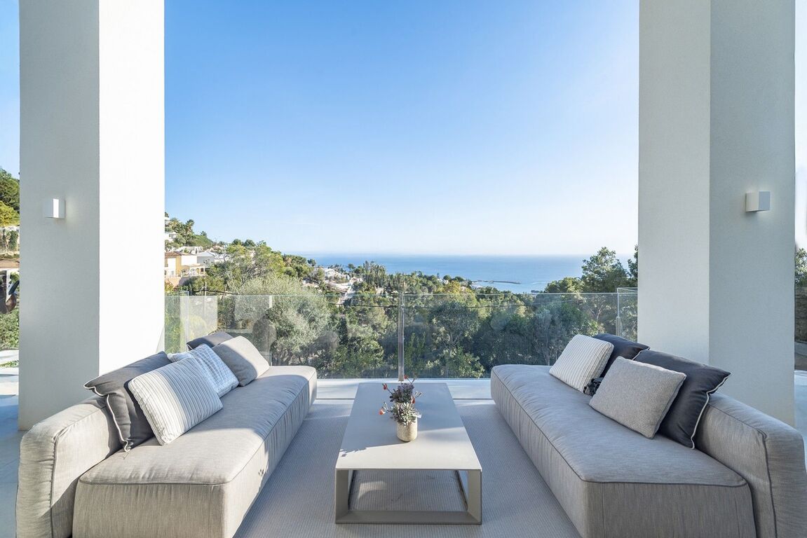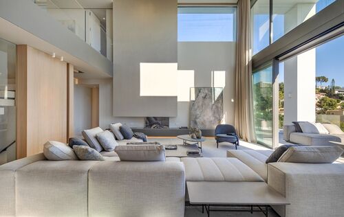 This exquisite villa with breathtaking sea views is perfectly situated above the prestigious marina of Puerto Portals. Boasting a seamless blend of luxury and comfort, the property features 5 spacious bedrooms, each with its own en-suite bathroom. The master suite is a true retreat, complete with a walk-in dressing area and a private patio. Spanning three thoughtfully designed levels, the villa offers a harmonious layout. The upper floor serves as the main entry point and houses two generously sized guest bedrooms, each with fully equipped en-suite bathrooms. A convenient elevator connects all levels, ensuring effortless movement throughout the home. On the middle floor, you’ll discover a modern, high-end kitchen that opens to a bright and airy dining area. Adjacent to this is a living room featuring floor-to-ceiling windows, a cozy fireplace, and a guest toilet. The design invites natural light to fill the space, creating an inviting ambiance. The lower level is dedicated to relaxation and entertainment, with a secondary living room. This level also includes two additional guest bedrooms with en-suite bathrooms. The outdoor space is a true highlight, featuring a stunning pool, a spacious lounge area, and a fully equipped outdoor kitchen, perfect for hosting and enjoying the Mediterranean lifestyle. Every room and terrace in this remarkable villa offers panoramic views of the Mediterranean Sea and the vibrant marina of Puerto Portals. Premium features include Poliform wardrobes, a Poliform kitchen, elegant Minotti furnishings, central air conditioning, and underfloor heating, ensuring year-round comfort and sophistication. Located in the exclusive residential area of Costa den Blanes, the villa is surrounded by pristine beaches, international schools, and the luxurious amenities of Puerto Portals. Its prime location is just 15 minutes from Palma’s city center and 25 minutes from the airport, making it the ideal home to embrace Mallorca’s Mediterranean lifestyle.
