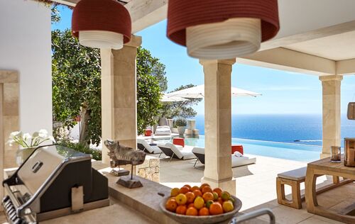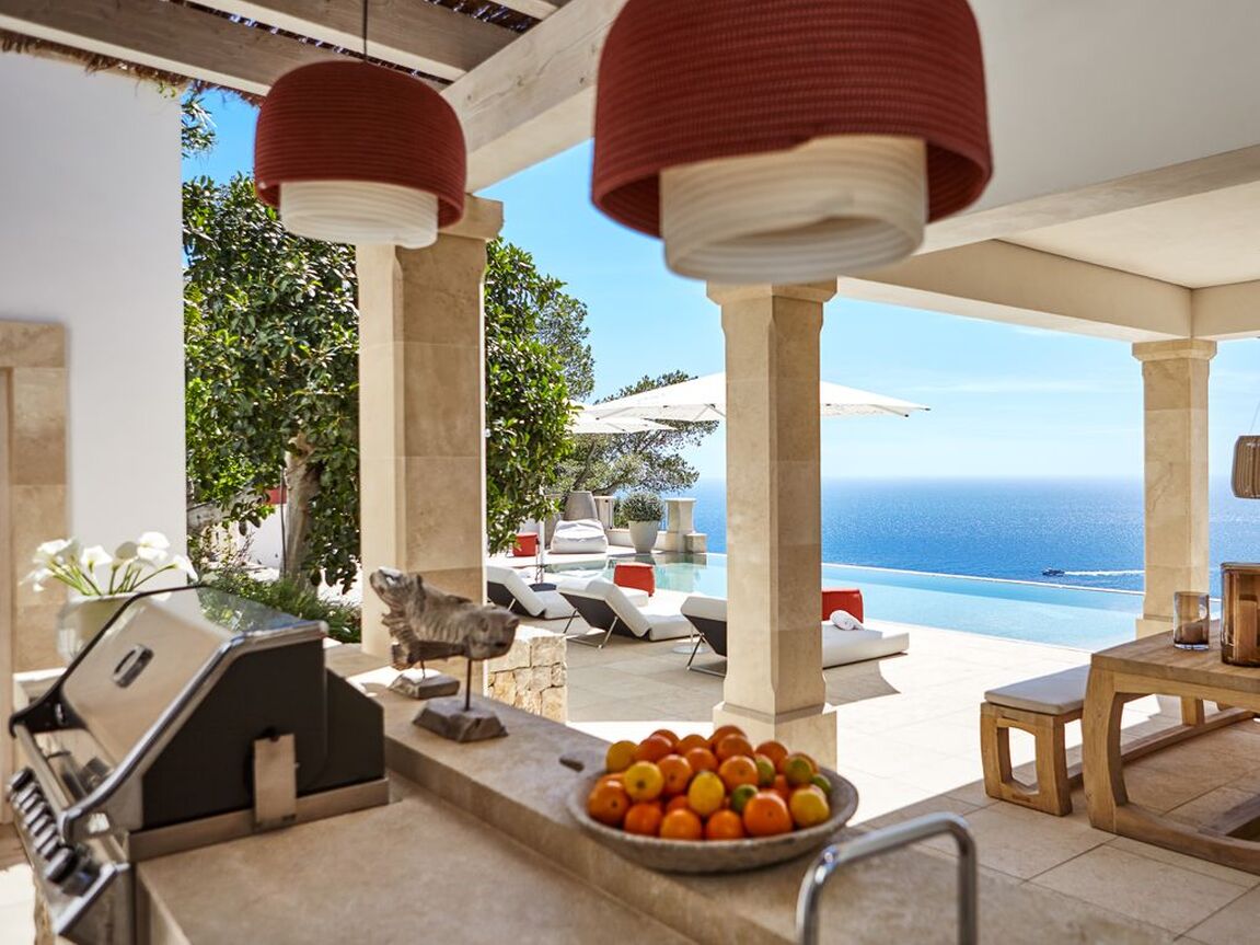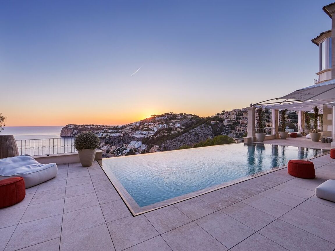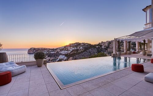 Being situated a supreme location in Cala Llamp in Port Andratx this exclusive villa offers breathtaking sea views. The property features highest construction quality according to German standards as well as a maritime and luxurious and at the same time traditional and contemporary design. The prominent harbour of Port Andratx with its lovely restaurants, shops, bars and the popular beach club in Cala Llamp are only a short drive away. Extras like the integrated sound system, lift and sauna ensure highest living comfort. Elaborated vertical gardens, unique pieces of art and exclusive design objects define the villa´s character. Elements like these, as well as the imposing olive tree in the entrance area, make the property a representative real estate which satisfies highest demands. Further exclusive features are: Infinity pool, sauna, underfloor heating, several fire places, fitness area, bodega, home cinema with `state-of-the-art´ technology and a garage for 4 cars. Photos: Marco Richter Photography