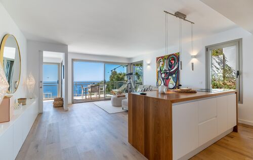 This recently renovated apartment is located in one of the best locations in Port Andratx – directly on the seafront with unobstructed views of the bay and the open sea. The small residential complex with only ten units offers a spacious community pool and a well-kept, Mediterranean-style garden. The apartment has been furnished with high-quality materials and features an open-plan living and dining area, a modern fitted kitchen, wooden floors, underfloor heating and hot/cold air conditioning. It offers two bedrooms and two bathrooms, one of which is en suite. Particularly noteworthy is the large outdoor area facing south with direct sea views. Other features: private parking, elevator and electric shutters. A modern, well-kept apartment in a quiet location – ideal as a holiday home or second home.