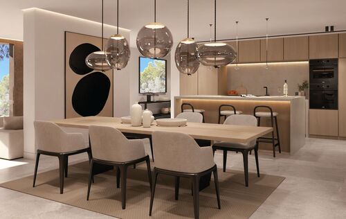 In a prime yet peaceful location of Santa Ponsa, just a short walk from the beach, marina, shops and restaurants, this modern new-built villa combines convenience, style and Mediterranean charm. Nestled in lush surroundings with south-facing green views, the property offers a perfect balance between central living and natural tranquillity. The villa impresses with a bright, contemporary design, featuring four spacious bedrooms and five elegant bathrooms, all finished with high-quality materials and attention to detail. The open-plan living area flows seamlessly onto the terrace and garden through large panoramic windows, creating a sense of light and openness ideal for relaxed Mediterranean living. A special highlight is the rooftop terrace, offering panoramic views over the surroundings – the perfect spot to unwind and enjoy sunsets with family and friends. The three-car garage provides generous space and flexibility, with room for a gym or hobby area, ensuring maximum comfort and functionality. Outside, the pool area is surrounded by a landscaped garden and a separate lounge and BBQ zone, inviting you to swim, dine, and enjoy the warm Mallorcan evenings. This exceptional property combines modern architecture, first-class amenities, and an unbeatable location – a unique opportunity for those seeking a brand-new home in one of the most sought-after areas of the southwest coast.