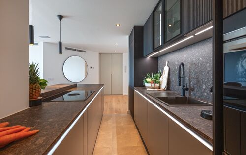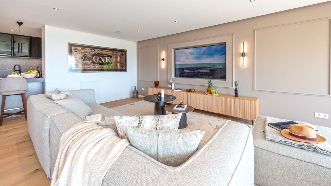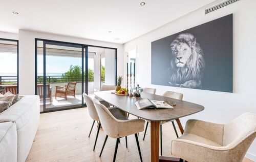 Discover this amazing apartment which has been renovated with very high quality materials. The property is located in the very sought after area of Cas Catalá, very close to many amenities and the nice sandy beaches. When entering the apartment, you will be amazed by the practical distribution and open views to the sea and green zone. The modern open-plan kitchen flows perfectly into the living and dining area, which have access to the beautiful terrace which can be as well closed in as a winter garden. The spacious apartment offers three bedrooms with two complete bathrooms (one en-suite), making it perfect as a holiday apartment or those who seek to stay all year long on the island. Furthermore, the property offers underfloor heating, A/C, electric sun shade for the master room, shutters, wine fridge, an outdoor parking space and a big community pool. The photographs of the property were taken by Florian Bresa.