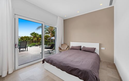This contemporary villa offers spectacular views over the Mediterranean and the coastline of Santa Ponsa, perfectly positioned between two exclusive marinas and just minutes from several golf courses and sandy beaches. Designed for comfort and elegance, the property features a spacious open-plan living and dining area on the ground floor, alongside a modern kitchen. Two bedrooms complete this level, both with direct access to the beautifully landscaped garden, sunny terraces, and a private pool—ideal for enjoying Mallorca’s year-round sunshine. The upper floor hosts the serene master suite with stunning sea views and a private en-suite bathroom, as well as two additional en-suite bedrooms, providing ample space for family or guests. Additional features include: underfloor heating via water heat pump, air conditioning (hot/cold), double-glazed aluminum windows, fireplace, solar technology, a lift, garage, and storage room—offering both efficiency and comfort in a sleek, modern design.