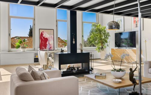This outstanding designer apartment in loft style offers a unique combination of contemporary elegance, generous volume and top finishes. The property impresses with a spectacular open-plan living area of 235 m². The main floor is entirely open in concept, seamlessly integrating a fully fitted modern kitchen with the dining and living areas. Large windows flood the space with natural light, enhancing the airy atmosphere, while the fireplace creates a warm and inviting focal point. On this level, there is also a spacious bedroom with an en-suite bathroom, as well as direct access to the garage for added convenience. The upper floor is dedicated to a stunning master suite with its own en-suite bathroom and direct access to an impressive 150 m² terrace. From here, you can enjoy breathtaking 360-degree views, offering the perfect setting for relaxing or entertaining. The loft is equipped with air conditioning (hot and cold), electric blinds, and infrared heaters, ensuring comfort and quality throughout. This is a truly exceptional property for those seeking stylish loft living with space, light, and remarkable outdoor areas.
