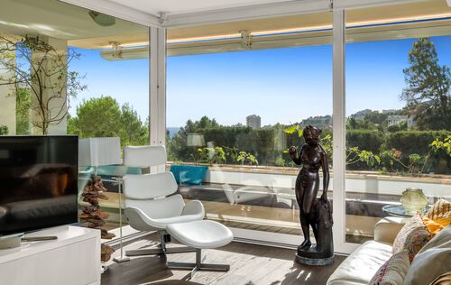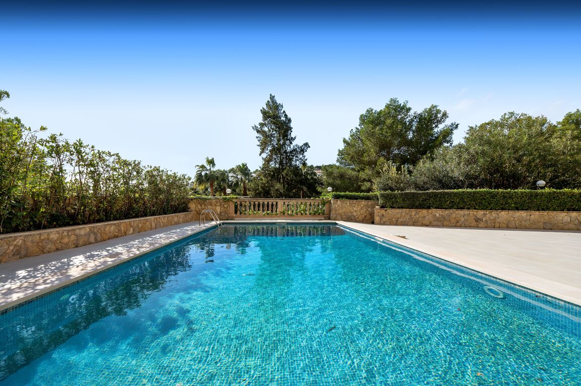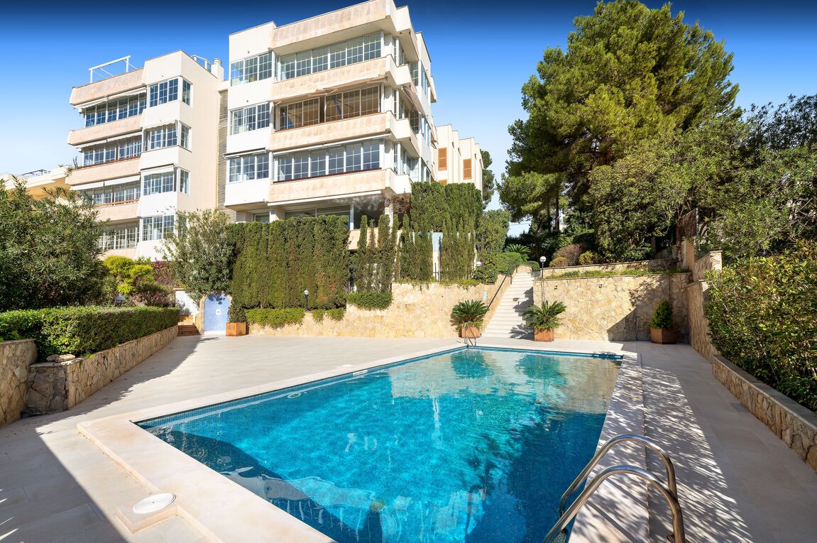 This spacious and bright apartament is located in a community with swimming pool and was completely refurbished in 2014. It is located in the area of Cas Catalá, surrounded by a green and natural environment and just a few minutes walking distance to the beach of Cas Catalá and all the services that the area offers. It consists of two bedrooms and two bathrooms. The master bedroom has two large dressing rooms, an en suite bathroom with turkish bath and access to the terrace. It is important to mention that the second dressing room can easily be converted into a third bedroom. The property has been refurbished with high quality materials. From the living room with open plan kitchen and dining area there is access to a spacious terrace with beautiful views to the nature. Furthermore, it offers a separate laundry room, water decalcification system, air-conditioning, an underground parking space and a backside.
