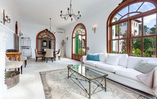 This wonderful property is within walking distance to Cala Major. It was built in 1930 and completely renovated in 2017, inside and outside, preserving the original character. The villa has a prestigious entrance with a well-kept garden of aromatic flowers. Through a beautiful staircase we reach the front area of the house where the pool is located and from where we have a beautiful view to the sea. The ground floor is divided into two living rooms, an open kitchen and a guest toilet. On the first floor we have 4 double bedrooms, 3 bathrooms (one en-suite) and a spacious living room. One of the bedrooms has a large terrace with stunning sea views. Next to the pool is a guest apartment with bedroom and bathroom.