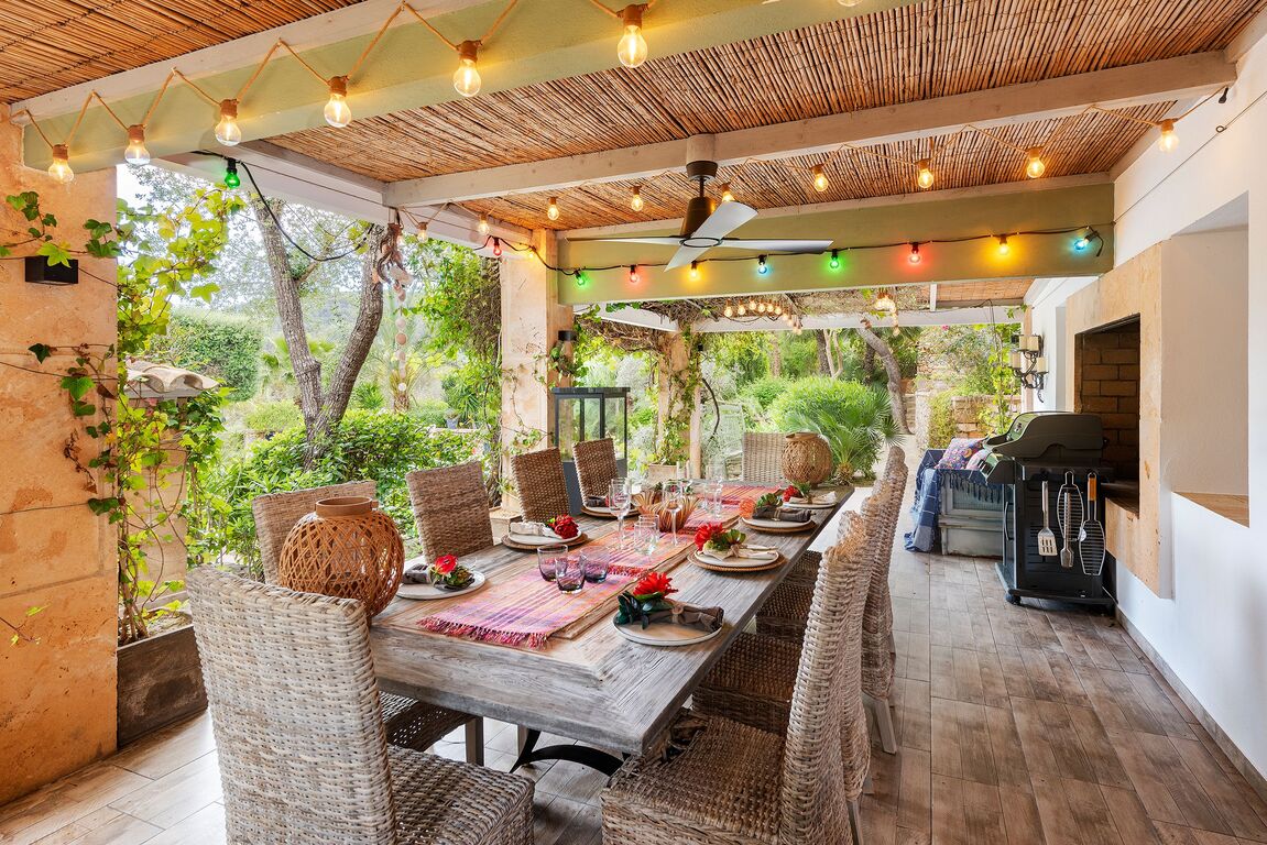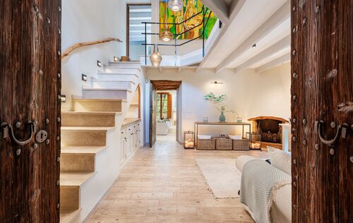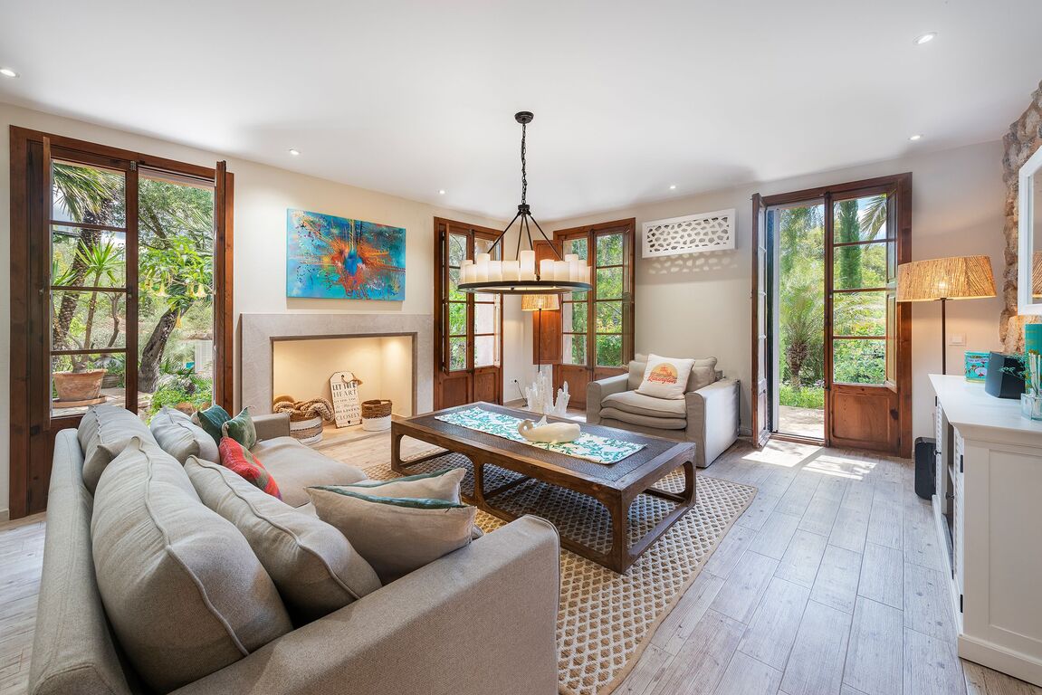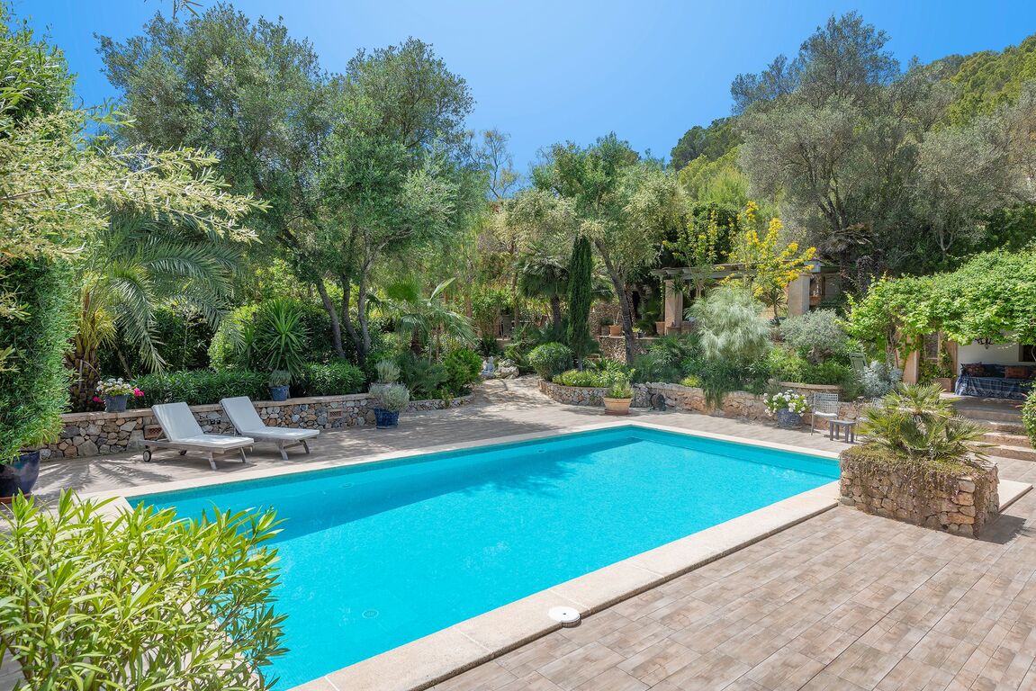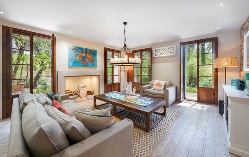 This romantic finca in S‘Arracó has been lavishly renovated and is located on a approx. 26.594 m² property at the foot of the imposing Tramuntana mountains range close to Port Andratx, the prominent fishing and luxury harbor in the exclusive southwest of Mallorca. The tranquil location of the finca offers much tranquility and absolute privacy as well as a fast access to the port of Andratx and the romantic little artists’ village S’Arracó. The property consists of a main and a guest house, as well as a generous swimming pool and many lounge areas with well maintained gardens. The finca counts in total with 4 bedrooms with each a bathroom en-suite, a living room, kitchen with adjacent dining room, music room and one office. The many lovely, Mediterranean elements and the wonderful atmosphere make this property a very special experience. Other extras include double garage, central oil heating through radiators, air condition w/c, 5 fire places, BBQ, fruit trees, rain water Reservoir, alarm system, an own well and much more.