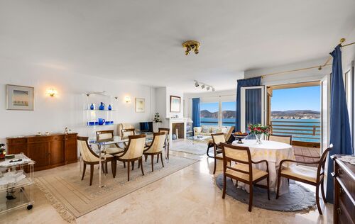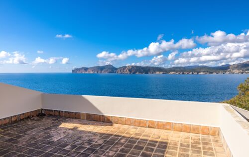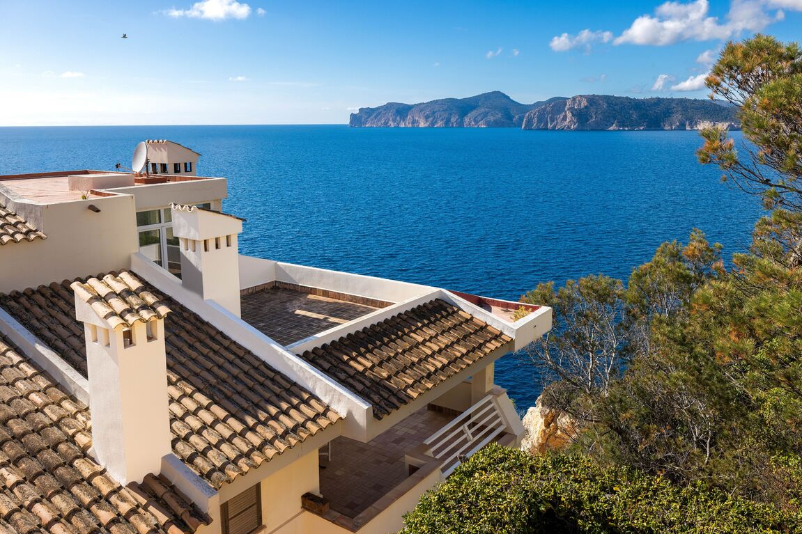 Discover the ultimate Mediterranean lifestyle in Mallorca with this unique seafront duplex penthouse in Santa Ponsa, offering breathtaking, uninterrupted sea views and unforgettable daily sunsets. Ideally located in a peaceful and highly sought-after area on the southwest coast of Mallorca, this exceptional property represents a rare opportunity to create your dream home by the sea. The penthouse currently features three bedrooms plus an additional room on the upper floor that is presently used as an office but can easily be converted back into a fourth bedroom, adapting perfectly to your lifestyle needs. Spacious interiors provide excellent potential for renovation or modernization, making this property an outstanding investment opportunity in Santa Ponsa. The bright living area includes a cozy fireplace and direct access to a generous covered terrace of approximately 30 m², the perfect setting for entertaining guests, dining outdoors, or simply relaxing while enjoying the sea breeze and panoramic Mediterranean views. A sunny private rooftop terrace offers even more outdoor space to enjoy Mallorca’s more than 300 days of sunshine each year. Set within an exclusive and charming residential community of only 30 units, residents benefit from beautifully maintained gardens and a communal swimming pool overlooking the sea, creating a peaceful atmosphere ideal for relaxation. Additional features include a garage parking space and a large storage room, providing comfort and practicality. Santa Ponsa is known for its relaxed coastal charm, beautiful beaches, prestigious golf courses, and vibrant marina lifestyle. Residents enjoy a perfect balance between tranquility and convenience, with excellent restaurants, cafés, beach clubs, and shopping just minutes away. Palma city and the international airport can be reached within a short drive, making this location ideal for both permanent living or a holiday home in Mallorca. Combining spectacular sea views, privacy, and enormous potential, this frontline penthouse in Santa Ponsa is a rare find on the Mallorca property market.