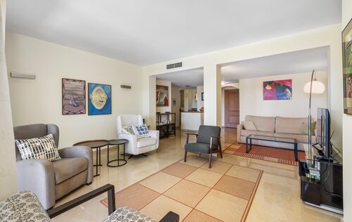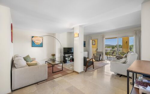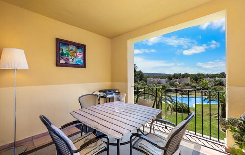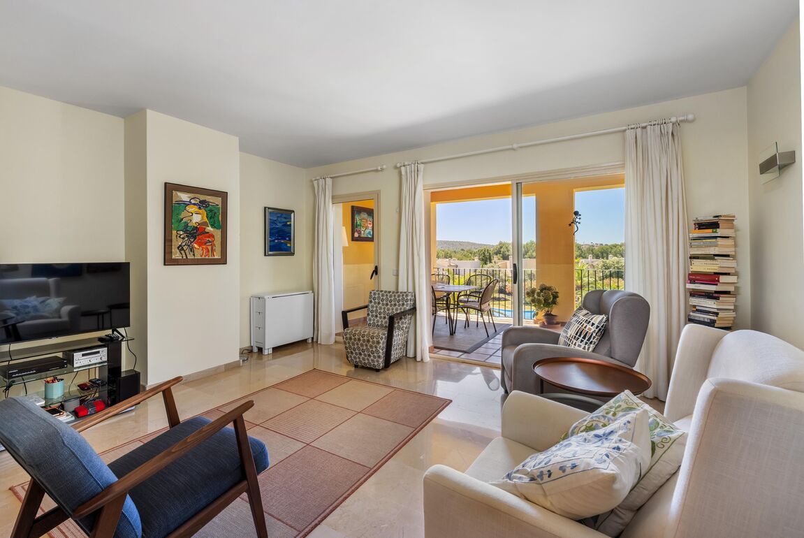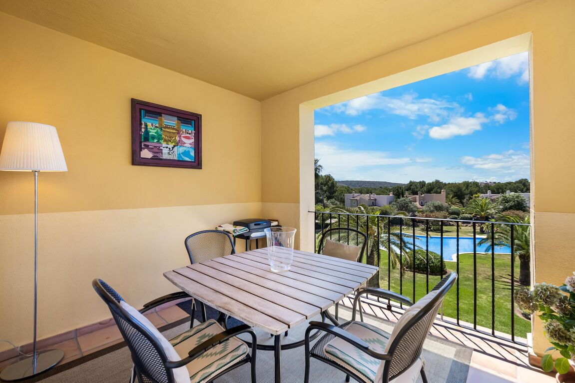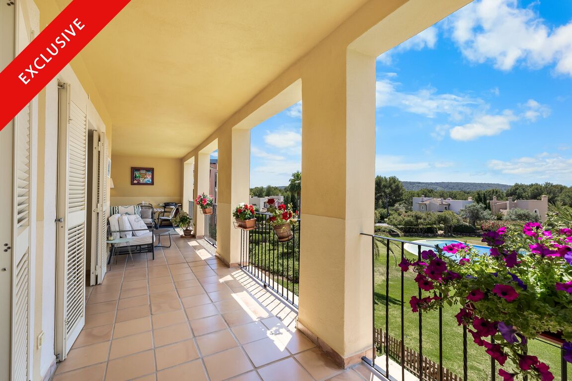 This charming apartment is located in a prestigious and well-maintained residential complex in Nova Santa Ponsa, one of the most popular places in the southwest of Mallorca. The property offers an ideal south-facing aspect and is bathed in sunlight all day long – perfect for those who appreciate light and warmth. The apartment impresses with its magnificent views of the greenery and the spacious communal pool area. Two large bedrooms are spread over approximately 130 m² of living space, both with access to a balcony – ideal for enjoying the fresh air and views of the greenery. A spacious living and dining area opens onto a large covered terrace overlooking the pool area – a perfect place to relax or enjoy convivial evenings outdoors. The fully equipped kitchen has a separate laundry room, offering additional convenience. The apartment also includes an underground parking space and a private storage room. This property is ideal for anyone looking for a quiet, well-maintained environment close to the beach without having to compromise on amenities and infrastructure. Shopping facilities, restaurants, golf courses and the marina of Santa Ponsa are just a few minutes away.