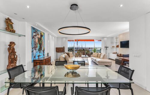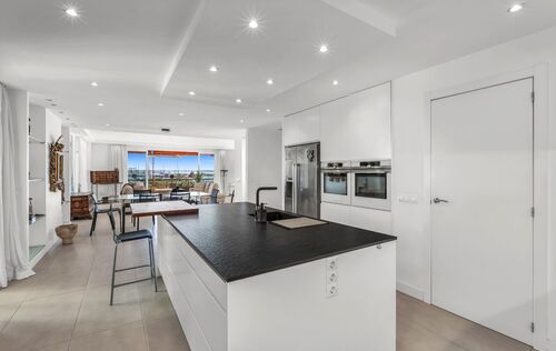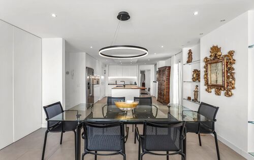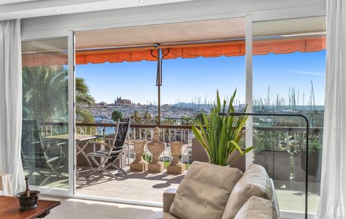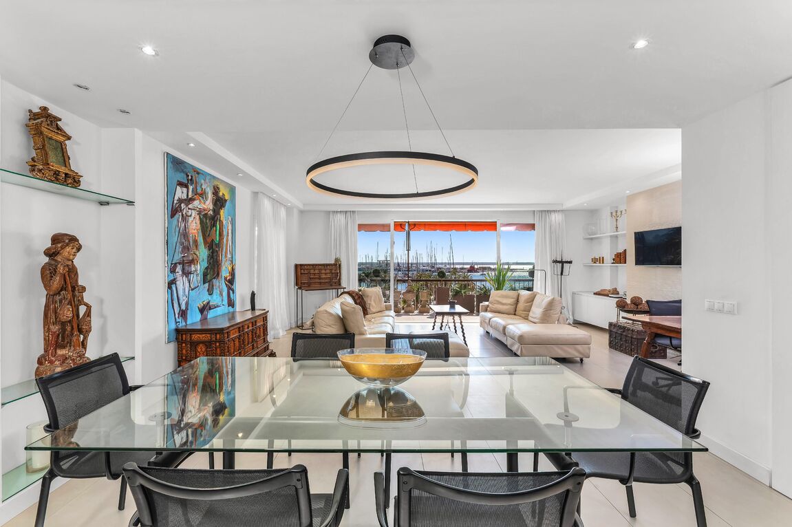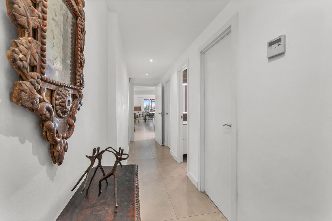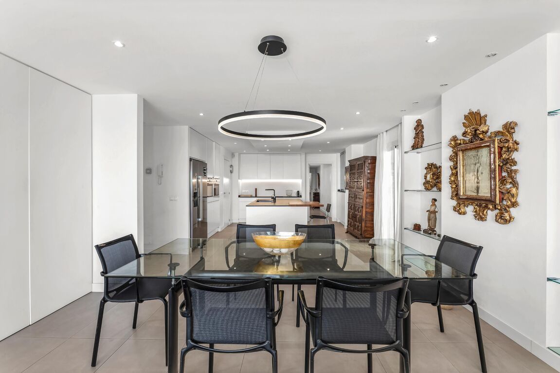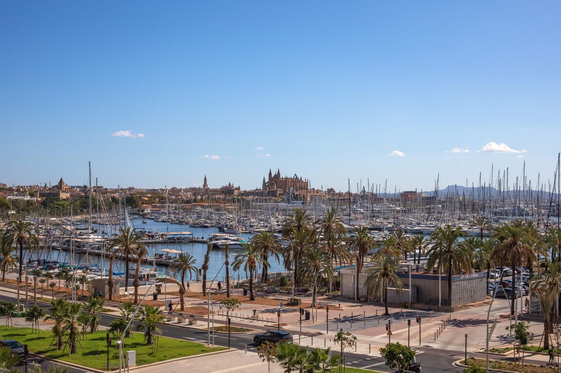 In one of the most privileged locations on the Promenade, this magnificent residence is presented, combining spaciousness, contemporary design, and iconic views of the marina and the cathedral. The property, recently renovated with top-quality materials, boasts approximately 220 m² of living space and is complemented by a private 30 m² terrace, which becomes a perfect setting to enjoy the Mediterranean Sea and the city skyline. Its layout stands out for its brightness and fluidity between rooms: a generously sized living-dining room harmoniously integrates with the open-concept kitchen, equipped with state-of-the-art technology. The property offers four double bedrooms —including a master suite facing the sea— in addition to a fifth single bedroom and four elegantly designed bathrooms. The interior design achieves a balance between modernity and comfort, creating environments that invite both daily life and the celebration of special moments with family and friends. The property features an elevator, service elevator with entrance, air conditioning, access to a spacious communal storage for bicycles, and two parking spaces. An exceptional residence in the heart of the Promenade, conceived for those seeking a perfect combination of location, style, and quality of life.
