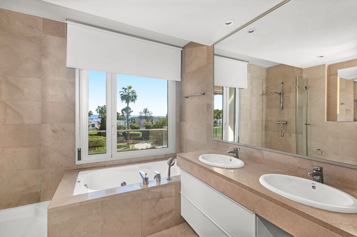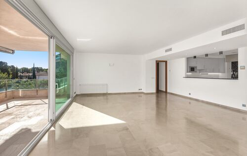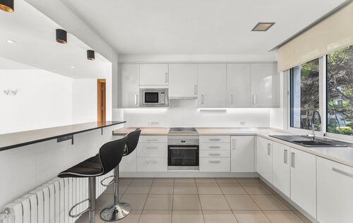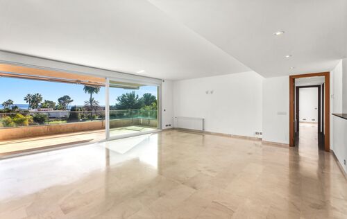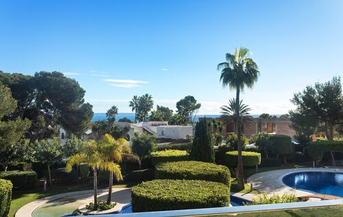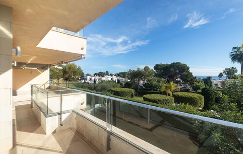 This very well maintained apartment is located in a sought after community in Sol de Mallorca. The apartment offers a spacious living area with a fully equipped kitchen and separate laundry area. From this area there is direct access to the generous covered area from where you will enjoy partial sea views and views over the beautiful community. The perfect layout offers two big guest bedrooms which share one bathroom and a complete master area with bathroom en-suite. Other extras are: central gas heating, a/c warm-cold, double glazed windows and one parking space in the underground garage. All together makes it the perfect apartment either for holidays or to enjoy all year round.