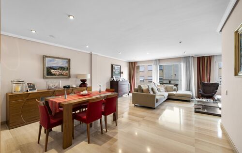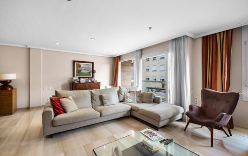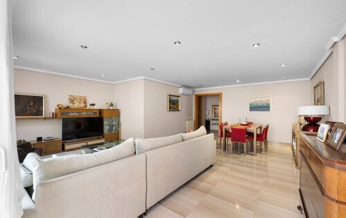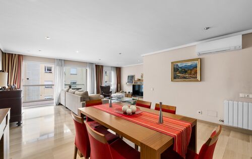 Spacious apartment for sale with 166 m² built (145 m² usable), featuring three bedrooms and two full bathrooms, ideal for families. The kitchen is fully equipped and furnished, seamlessly connecting with the living and dining areas. This flat is very bright due to its southern exposure and large PVC-framed windows. Marble floors add elegance, and air conditioning along with radiator heating ensures year-round comfort. It includes a terrace and balcony, parking space included, with an option to acquire a second one. The building has a lift and is adapted for people with reduced mobility. Located in an area with all services nearby, it is an opportunity to live comfortably in the center.