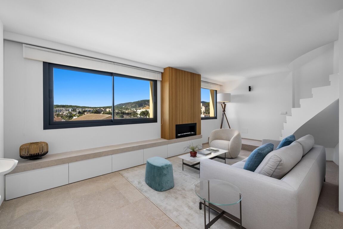 In the sought-after neighborhood of Son Espanyolet, this spectacular fully renovated duplex penthouse is presented, a property that combines modern sophistication with the most authentic Mediterranean essence. The renovation, carried out with top-quality materials and great attention to detail, offers an atmosphere of serenity, brightness, and comfort in every corner.