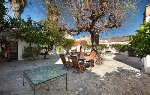 Upper floor of a 1940s stately villa with an oasis garden in Son Armadams