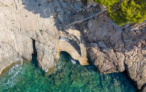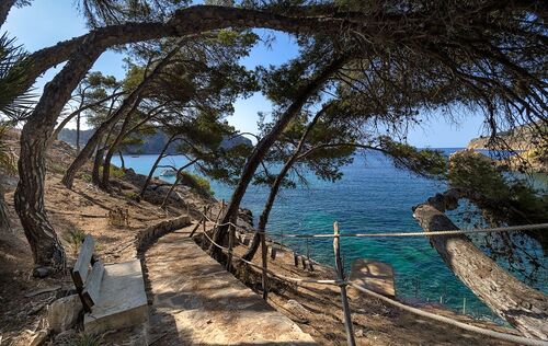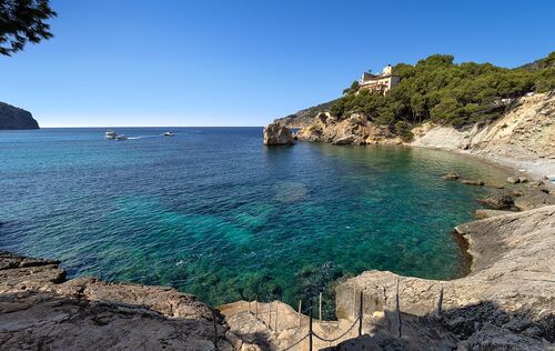 This exceptional frontline plot with an old house in first sea line in Camp de Mar has a total of 1864 m² and offers the exceptional opportunity to build a new villa with sea access that leaves nothing to be desired. Situated in a quiet cul-de-sac, the sandy beach of Camp de Mar and the golf course are only a few minutes walk away. Palma is only 25 minutes away by car.