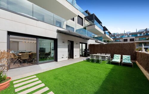 This bright 3-bedroom, 2-bathroom apartment perfectly embodies the Mediterranean lifestyle, with contemporary design, high-quality finishes, and a focus on comfort and style. Located just a few minutes’ walk from the sandy beach of Santa Ponsa, the property is ideal for families or anyone seeking a peaceful yet vibrant coastal setting. The development features beautiful landscaped gardens, a large swimming pool, and elegant communal areas designed for both relaxation and recreation, while offering privacy and security. The apartment opens directly onto a spacious private garden, perfect for outdoor dining, entertaining friends, or letting children play safely in the sunshine.